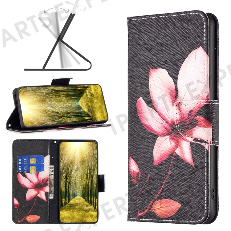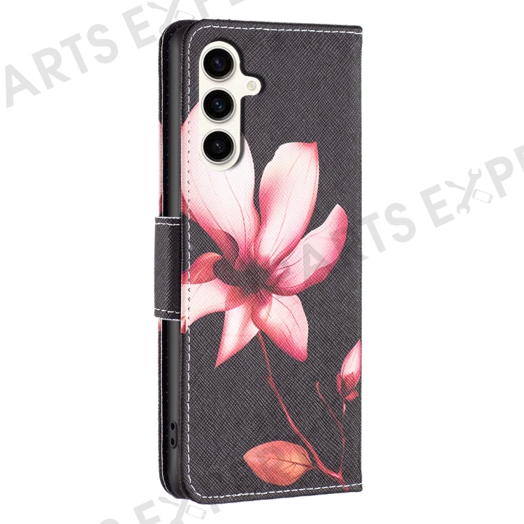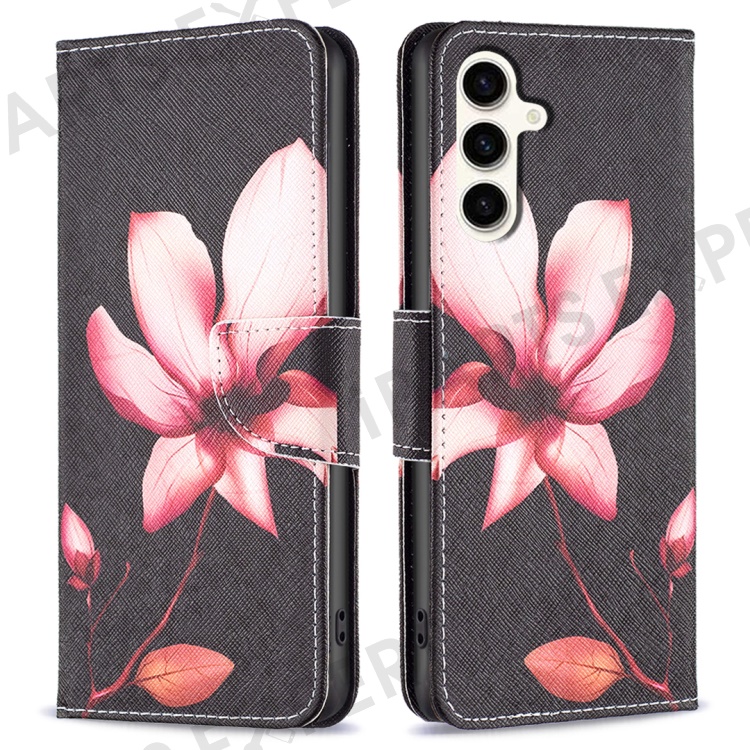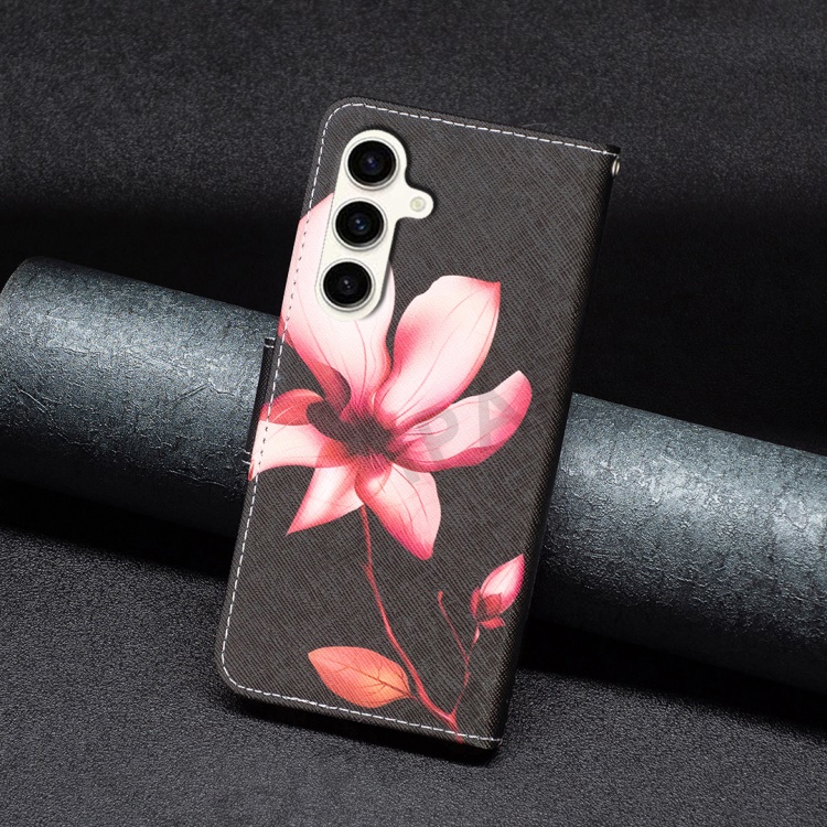 Wallet Case for Samsung Galaxy S23 FE PU Leather Pattern Printing Stand Flip Phone Cover - Pink Flower