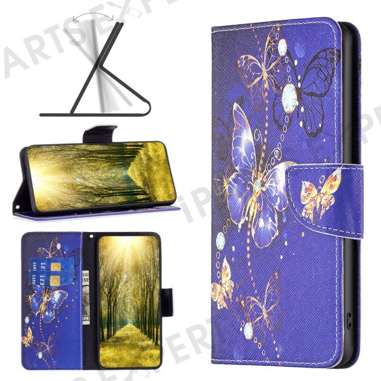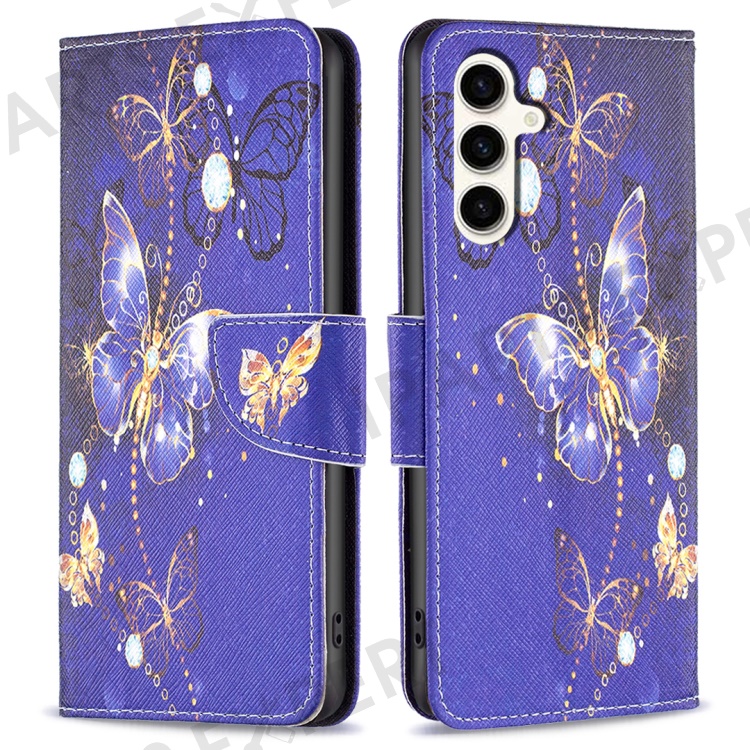Wallet Case for Samsung Galaxy S23 FE PU Leather Pattern Printing Stand Flip Phone Cover - Purple Butterflies