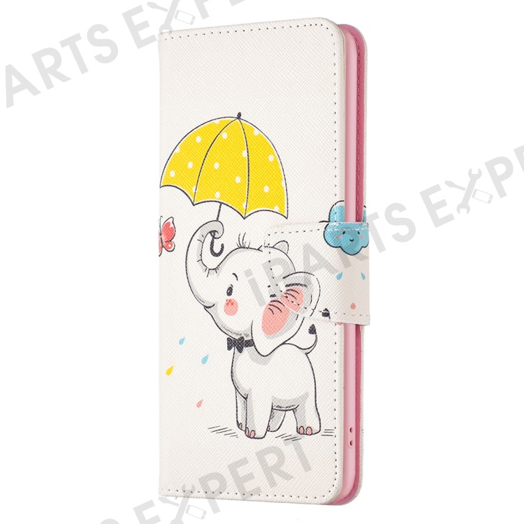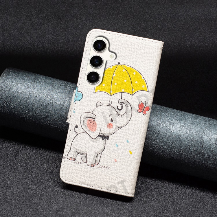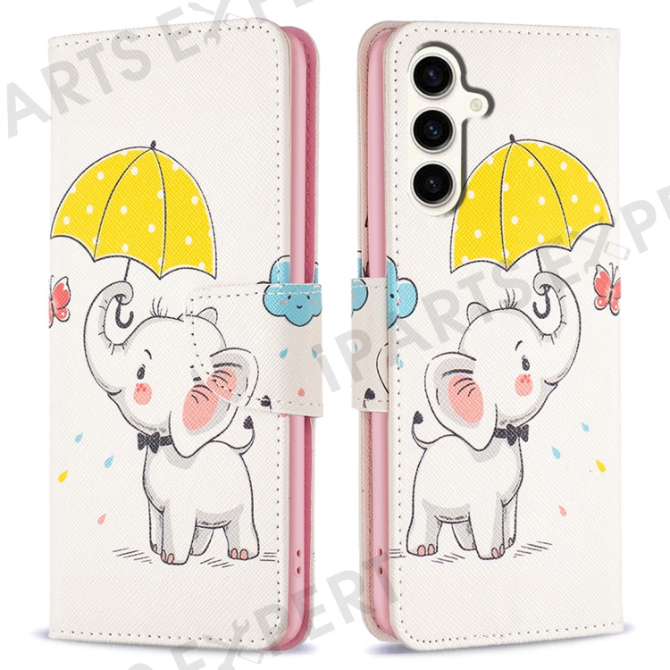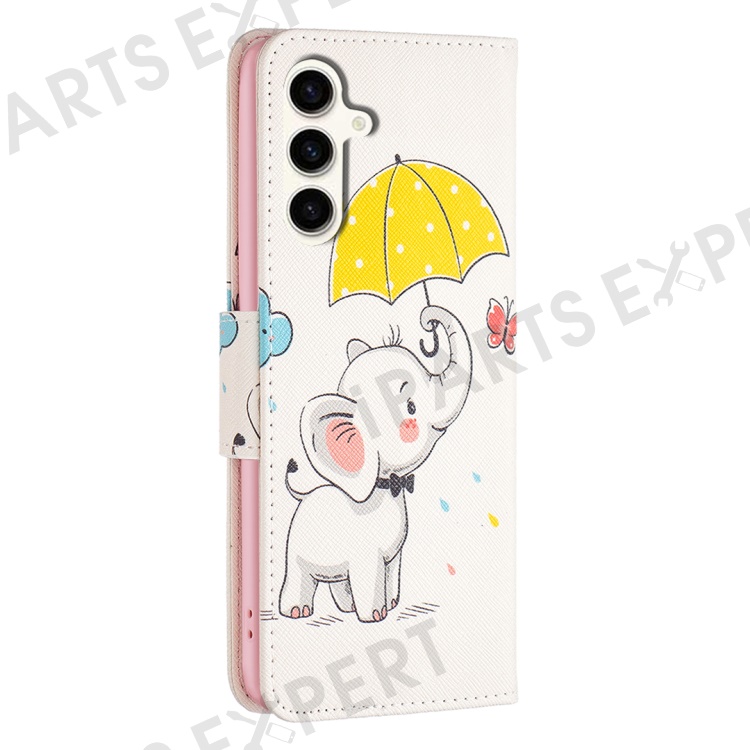 Wallet Case for Samsung Galaxy S23 FE PU Leather Pattern Printing Stand Flip Phone Cover - Umbrella and Elephant