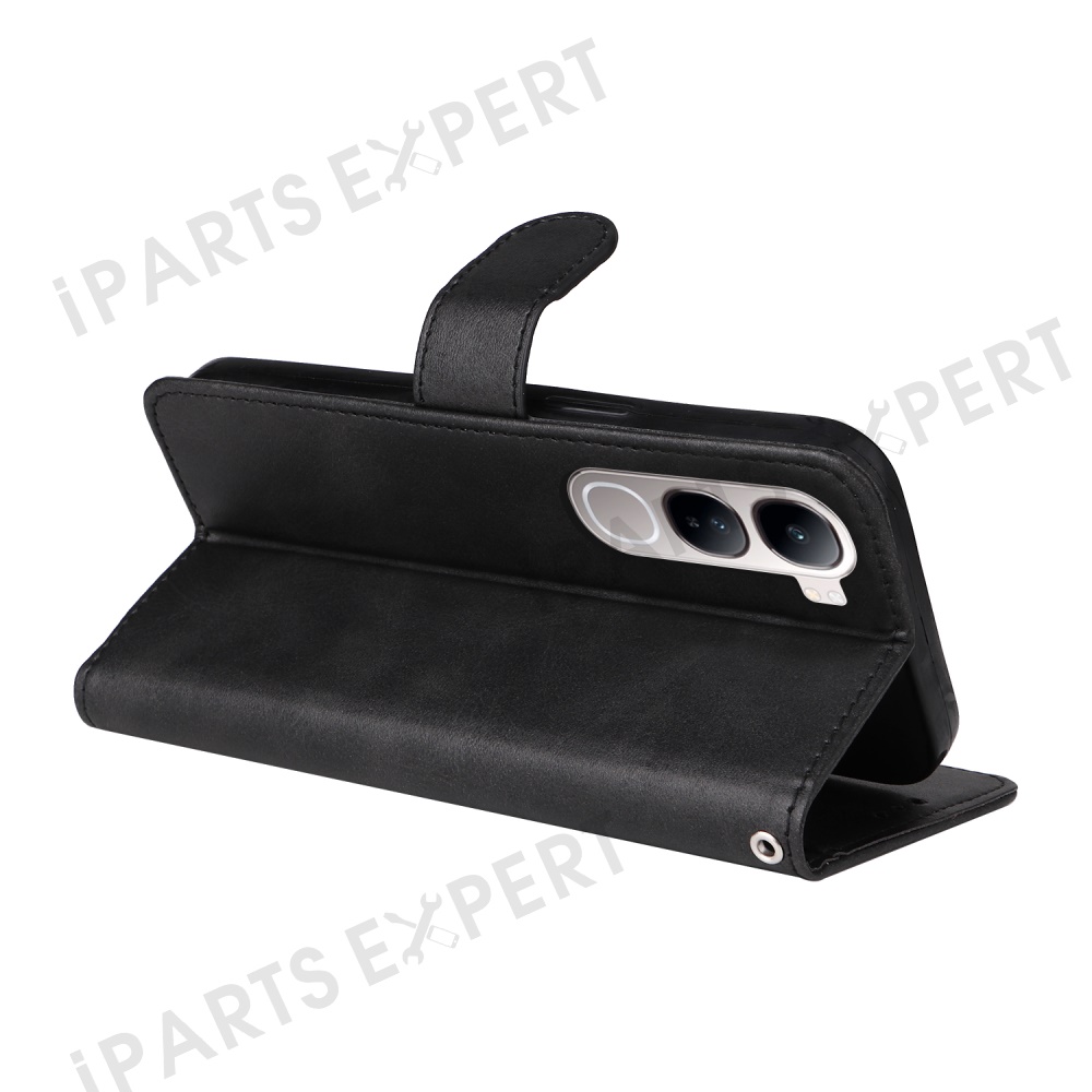 Wallet Case for vivo Y300 5G / Y200 5G / V40 Lite (Indonesia) 5G / 4G Leather Phone Cover - Black