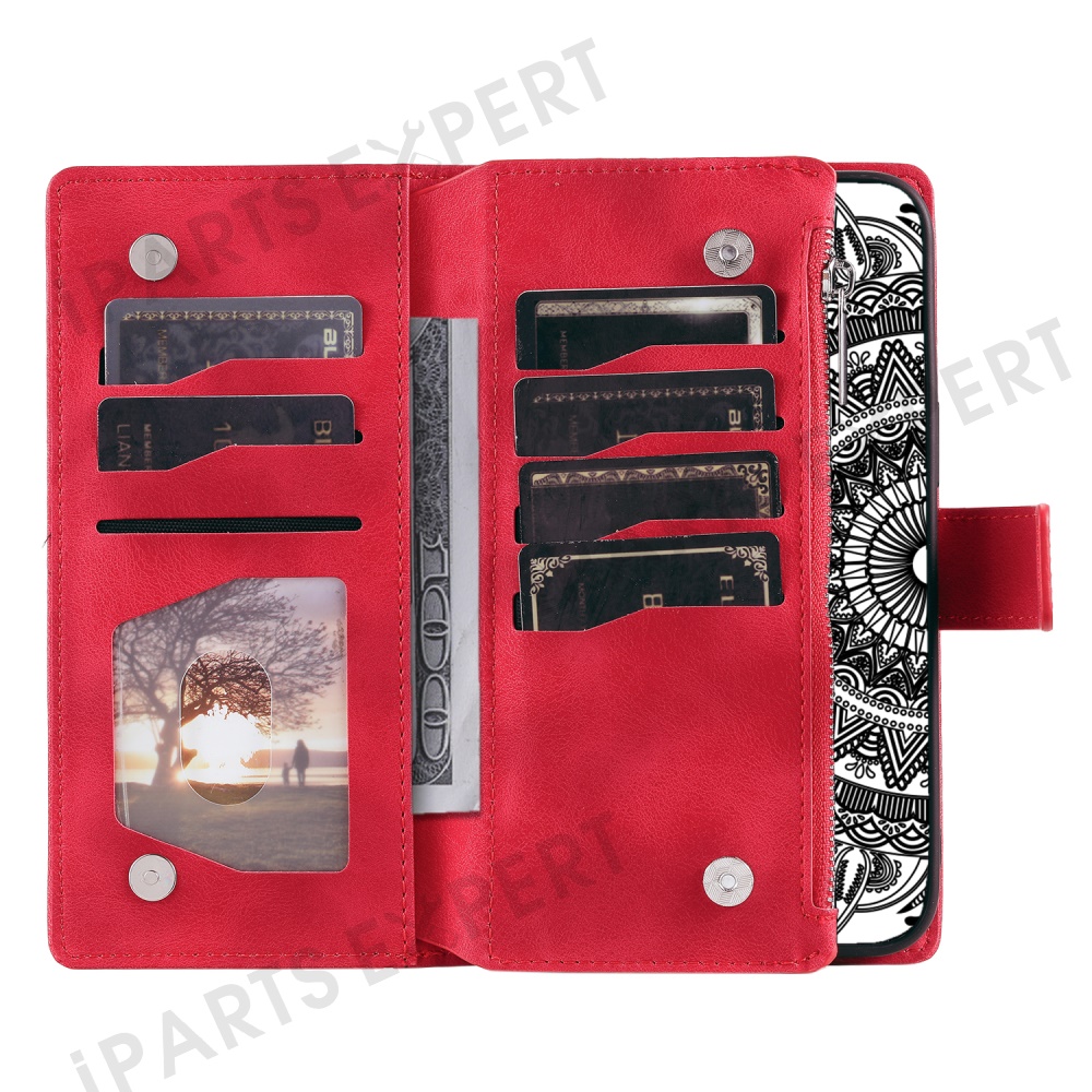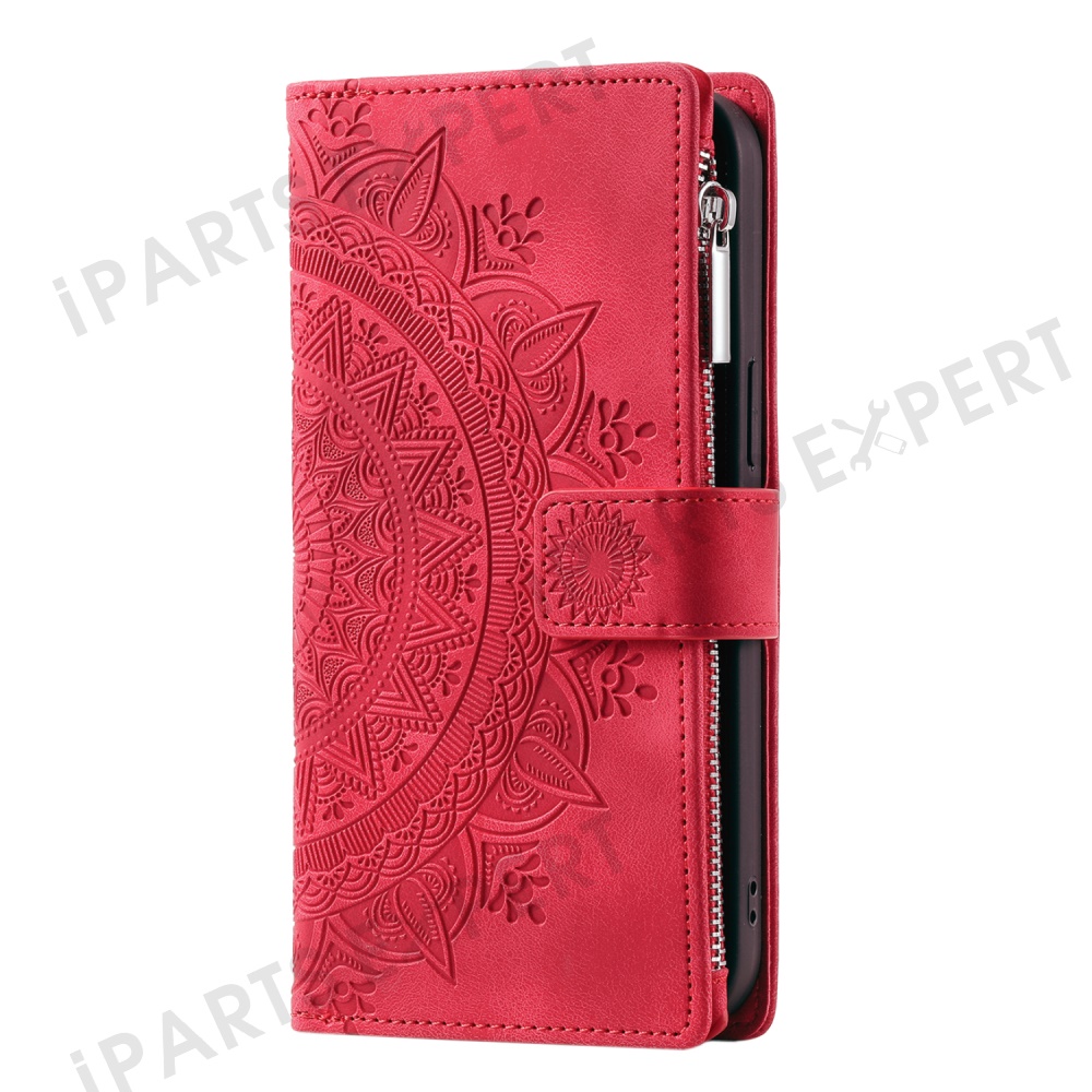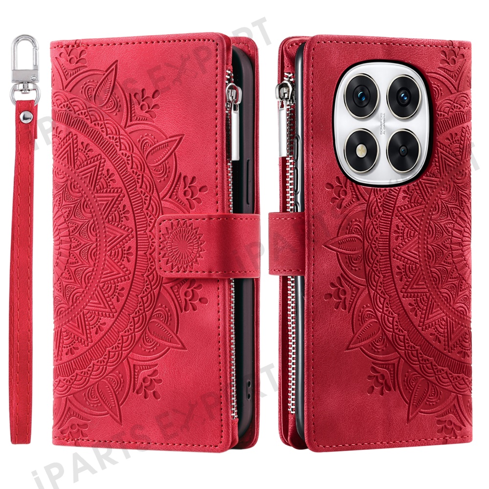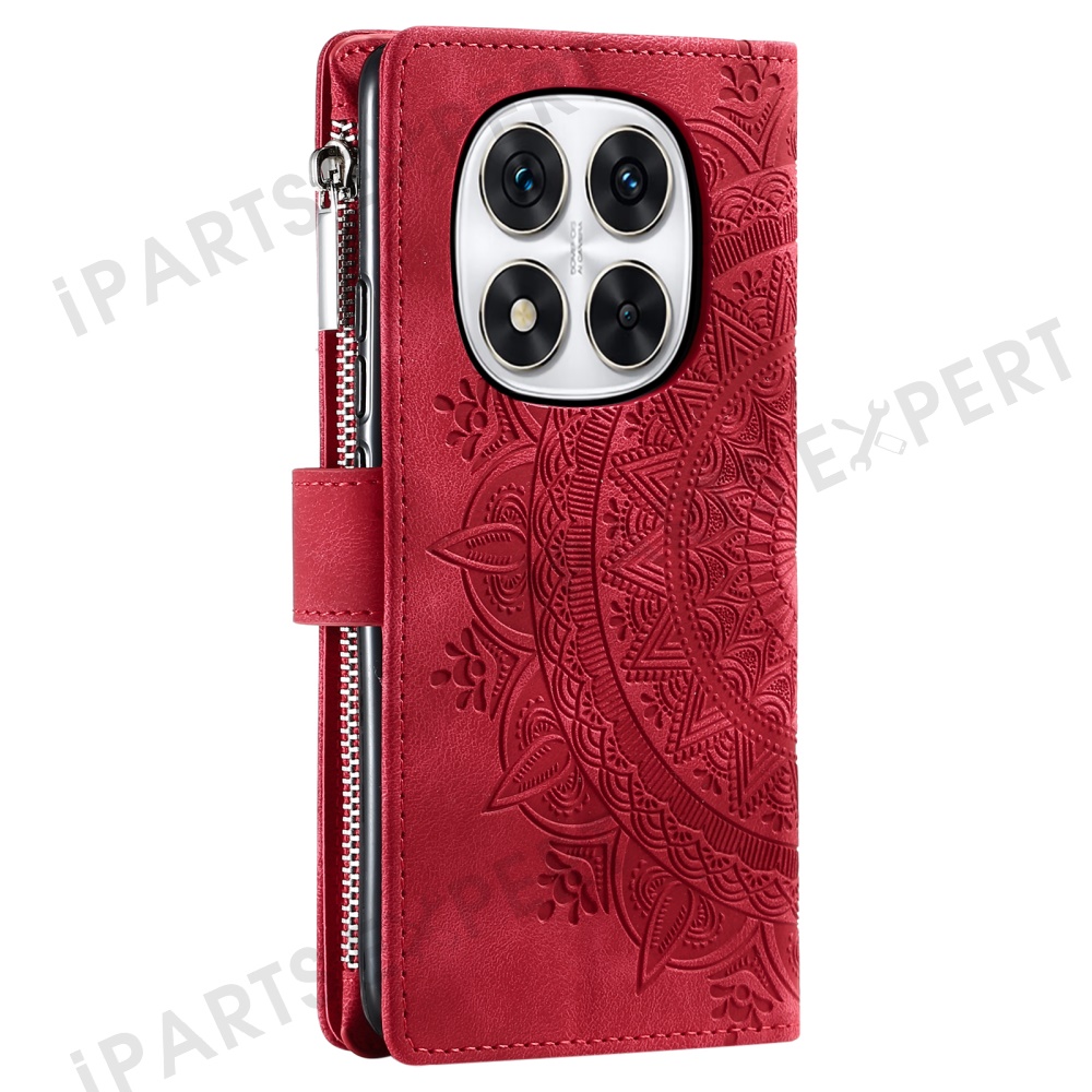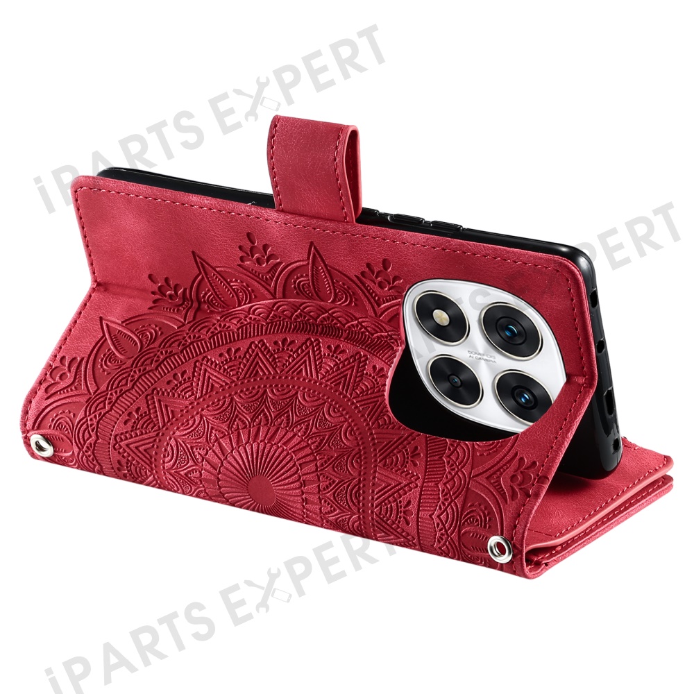Wallet Case for Xiaomi Redmi Note 14 Pro+ 5G / 14 Pro 5G / Poco X7 5G PU Leather Phone Cover Mandala Flower Pattern - Red