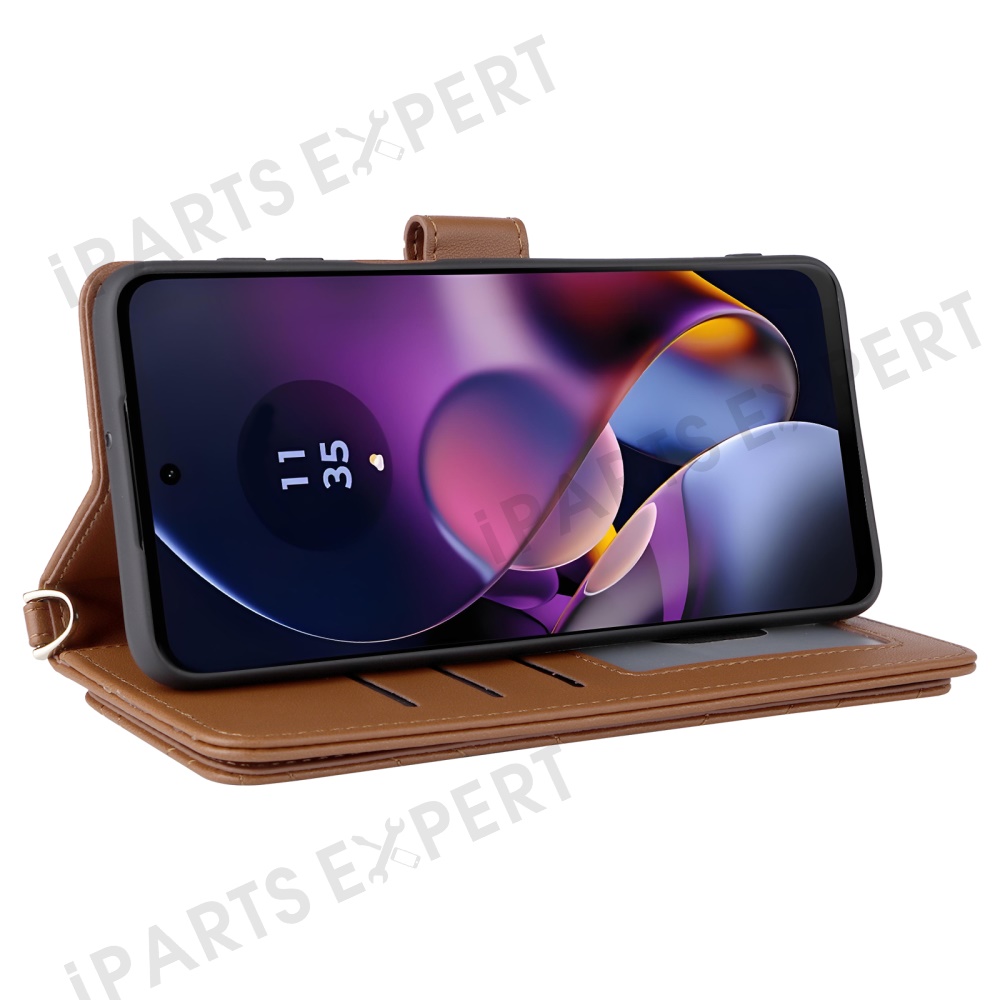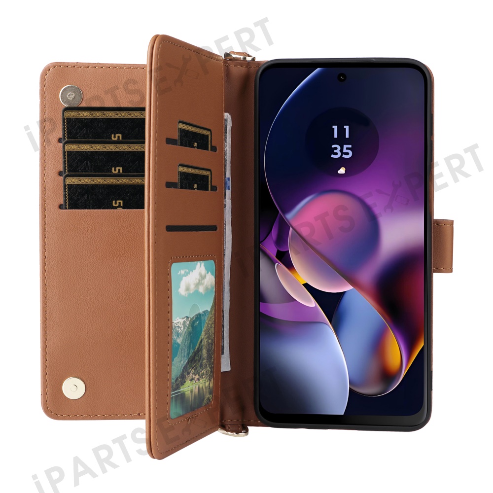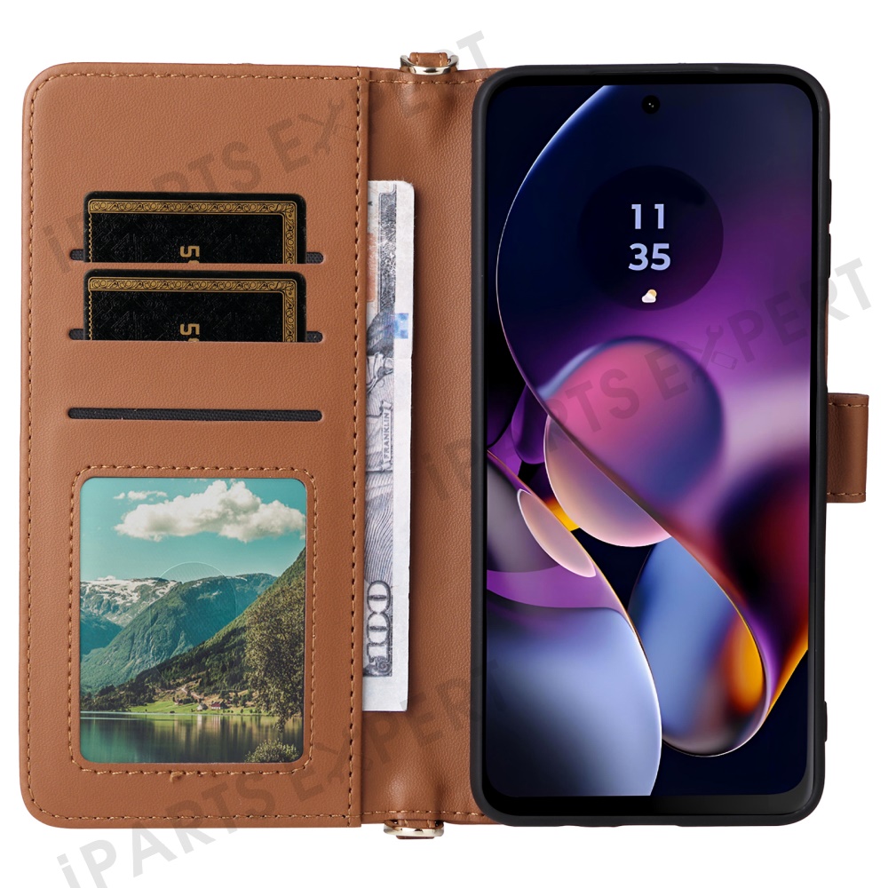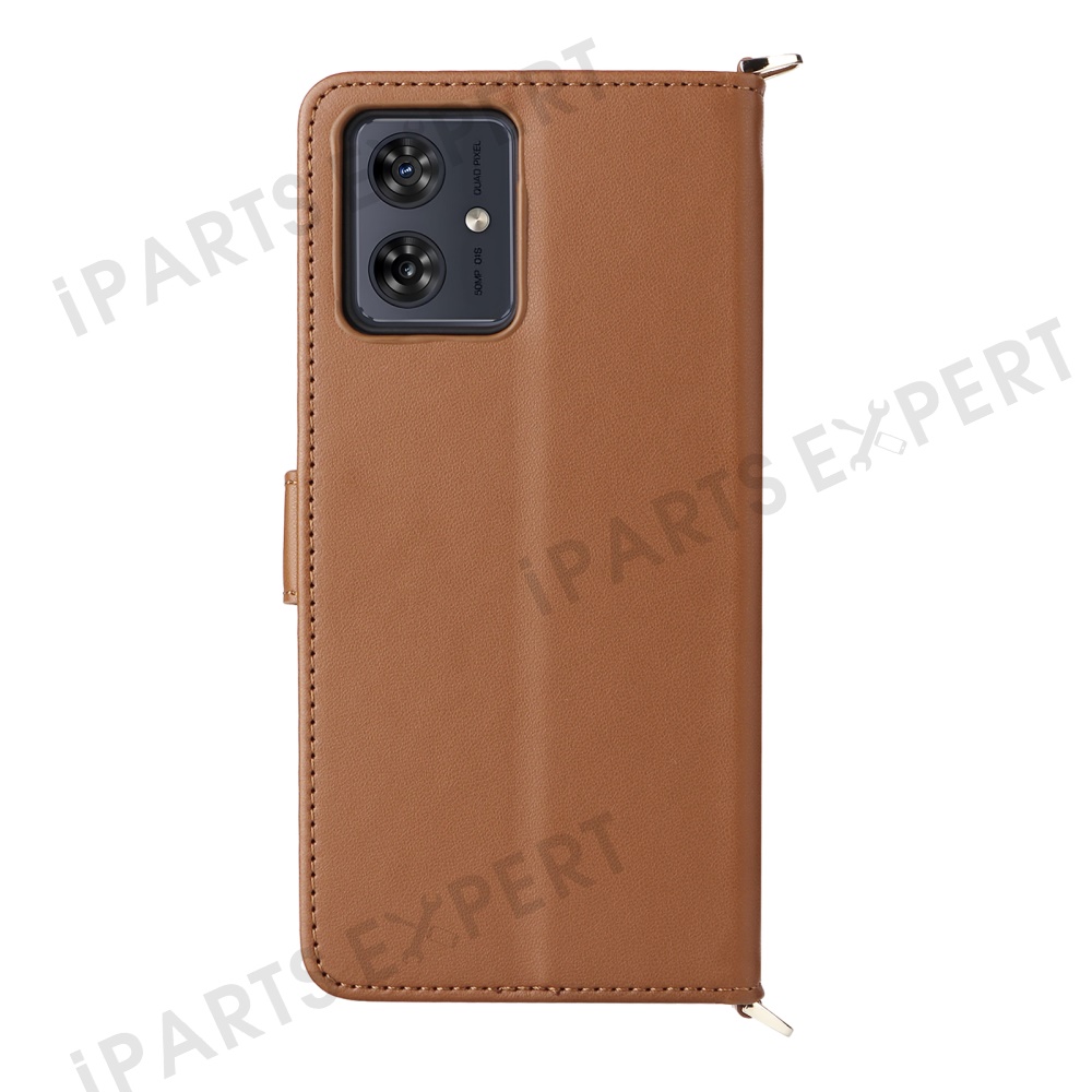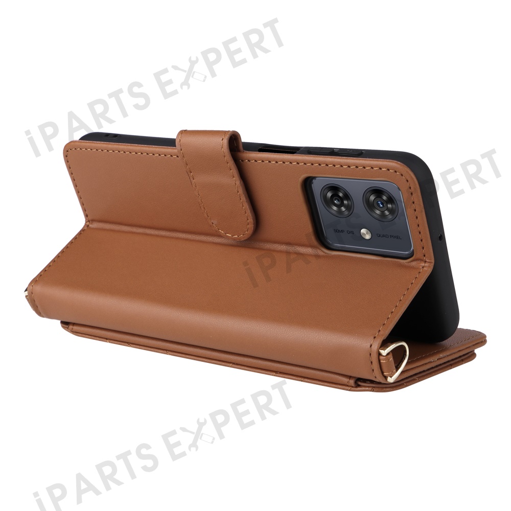 Wallet Phone Case for Motorola Moto G64y 5G / G64 5G / G54 Power 5G / G54 5G Leather Cover with Shoulder / Wrist Strap - Brown