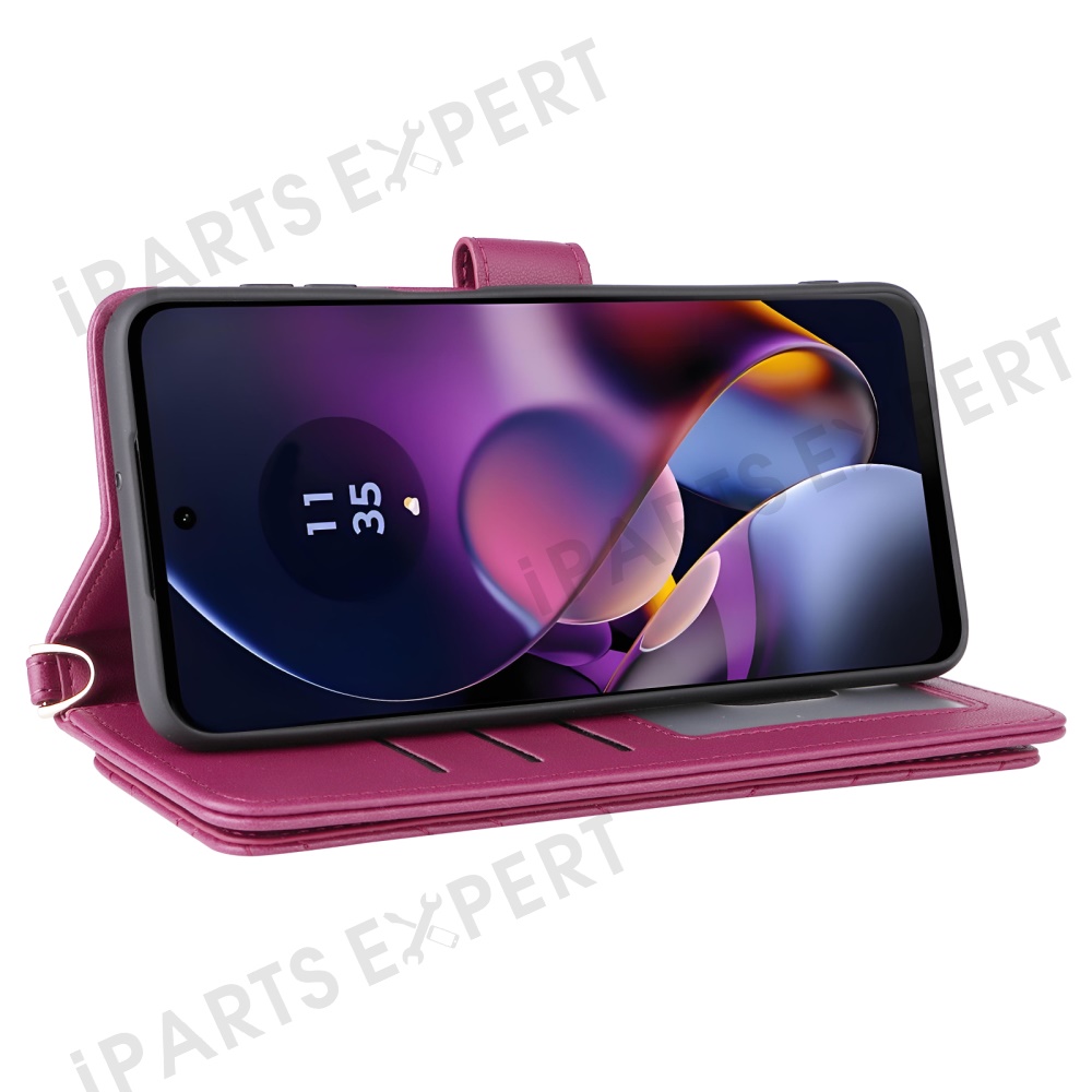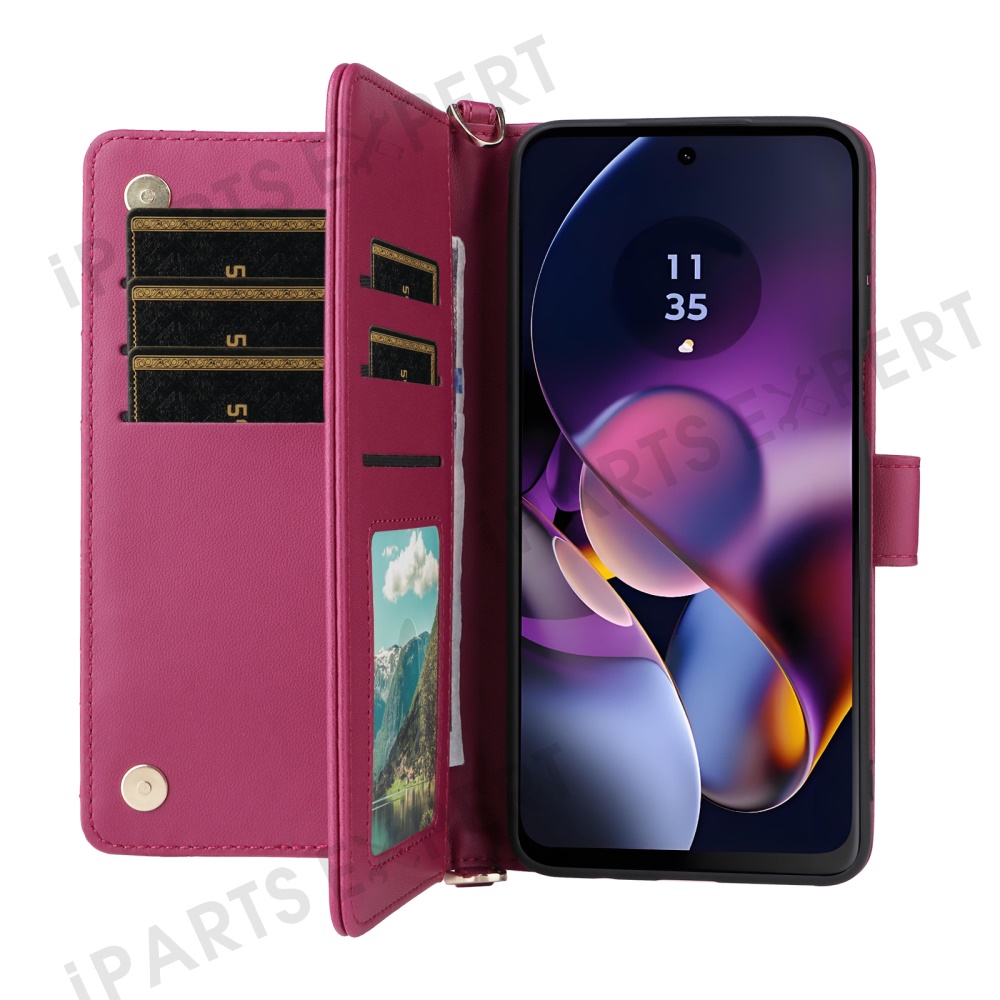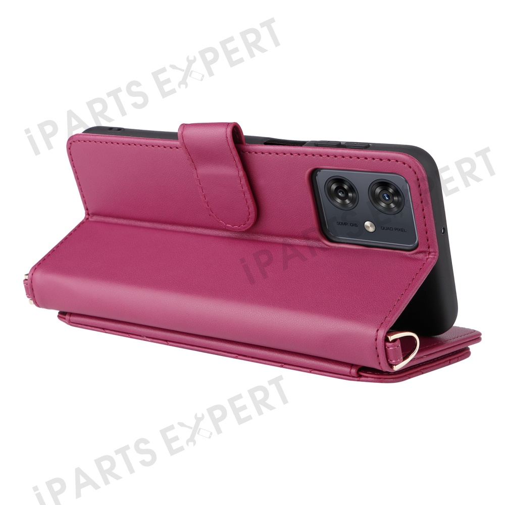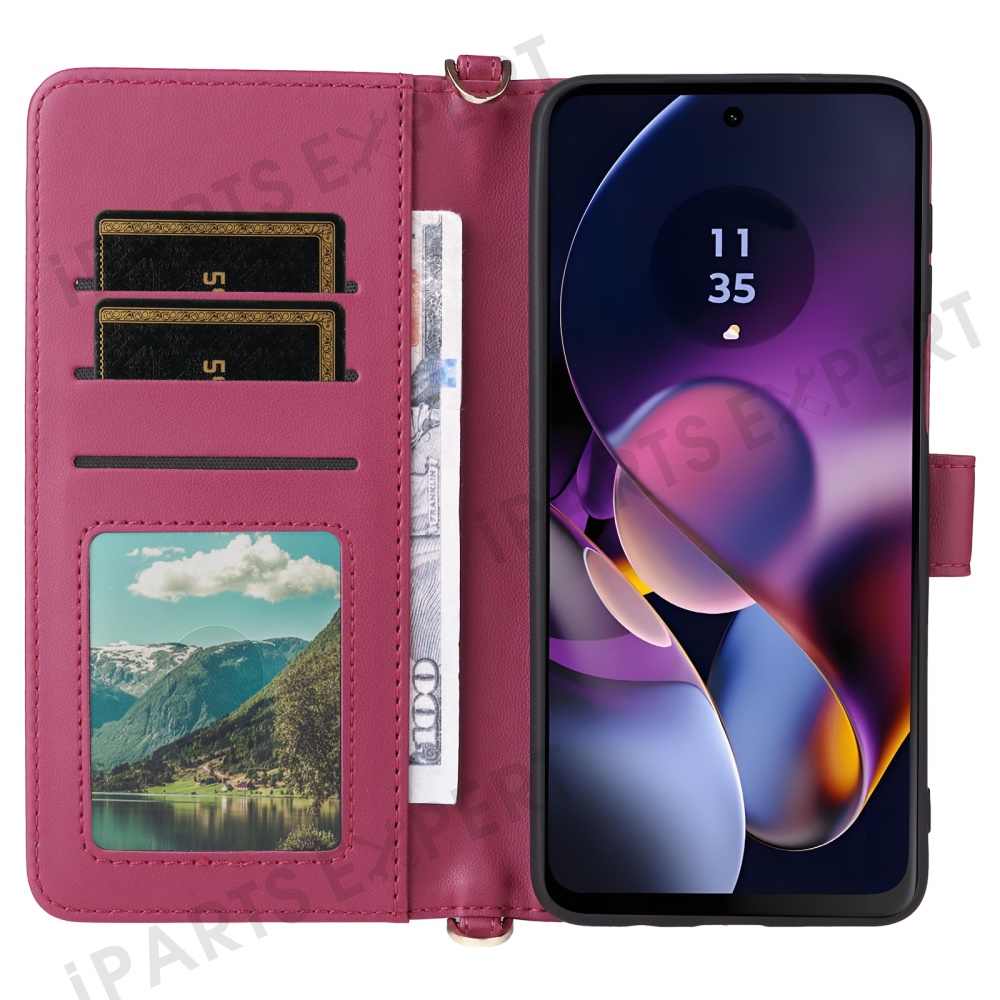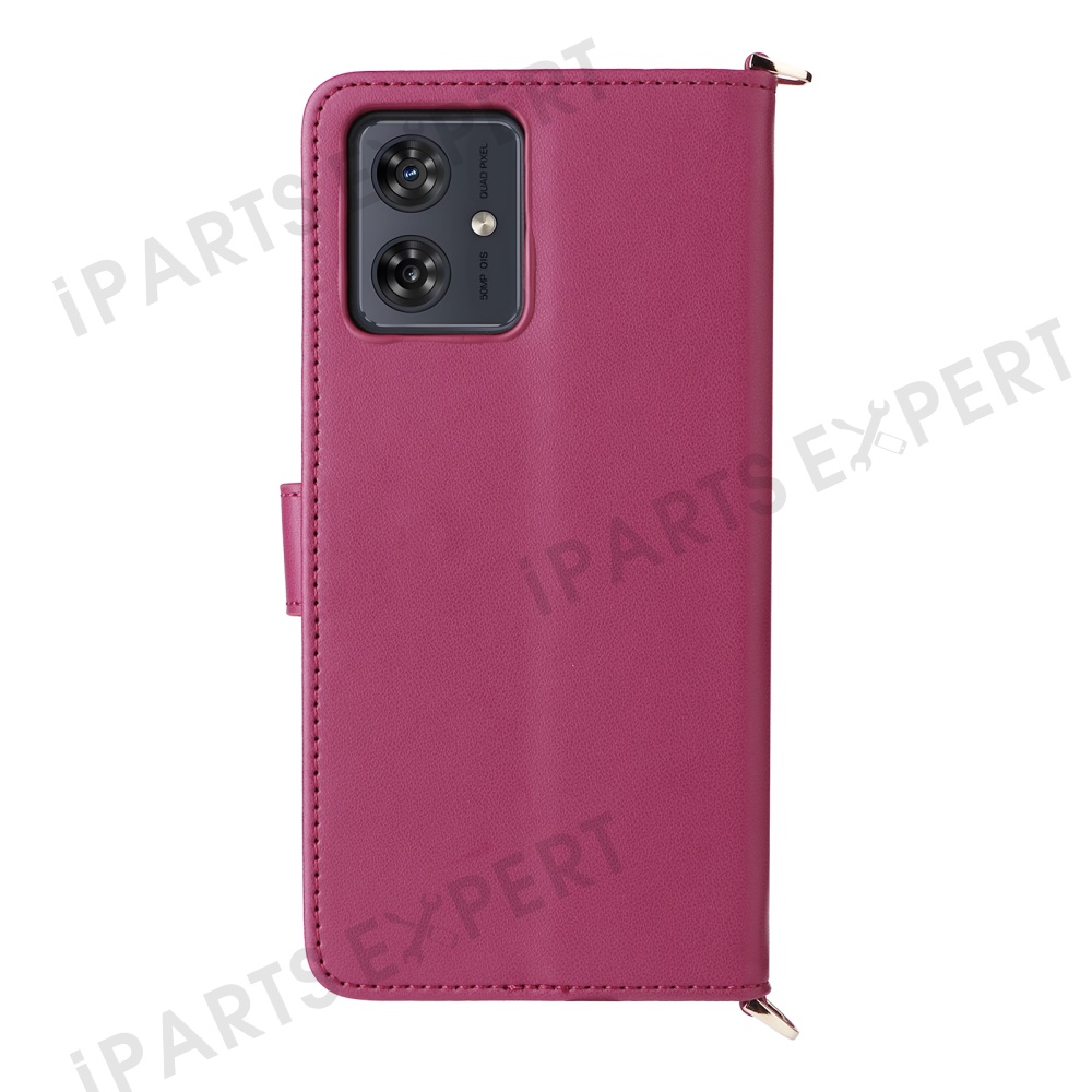 Wallet Phone Case for Motorola Moto G64y 5G / G64 5G / G54 Power 5G / G54 5G Leather Cover with Shoulder / Wrist Strap - Rose