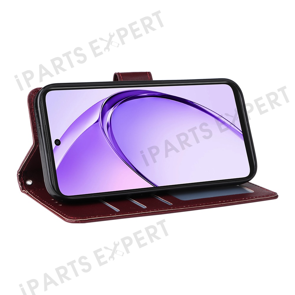 Wallet Phone Case for Oppo A3 4G / 5G / A3x 4G / 5G (India) / A60 5G / A40 4G PU Leather Cover - Wine Red