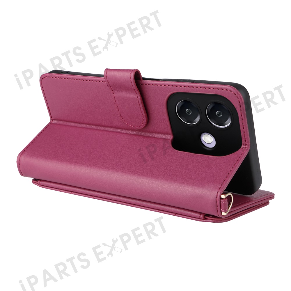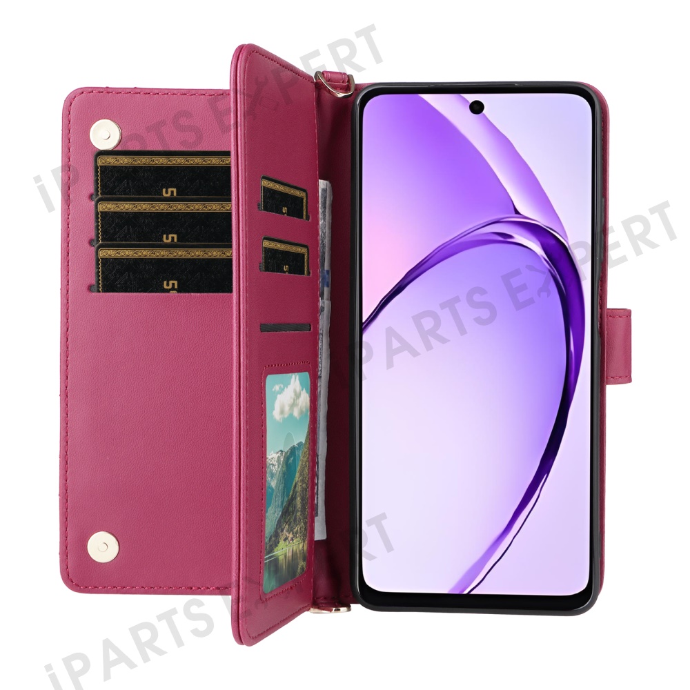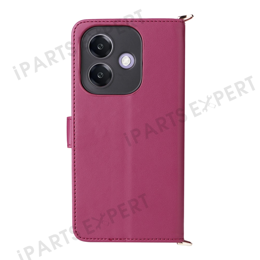 Wallet Phone Case for Oppo A3x 4G / 5G (India) / A3 4G / 5G / A40 4G / A40M 4G / A60 5G / A3i 5G Leather Cover with Shoulder / Wrist Strap - Rose