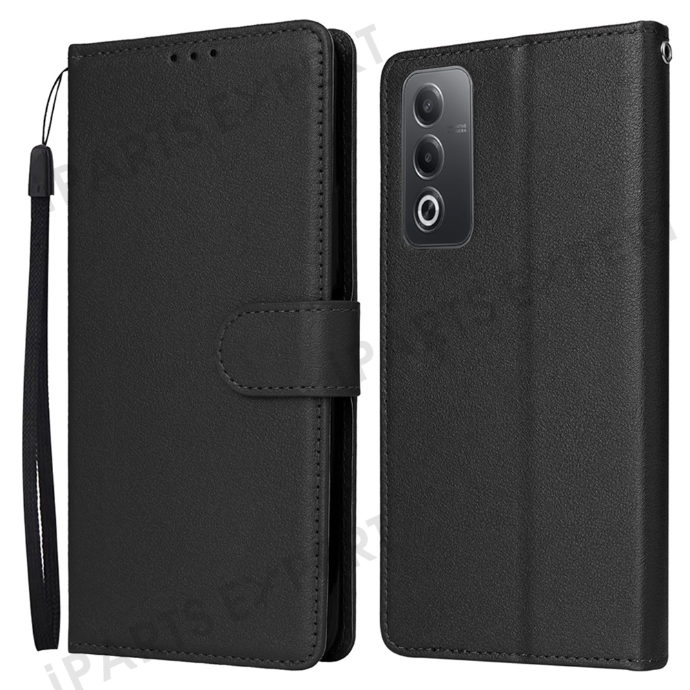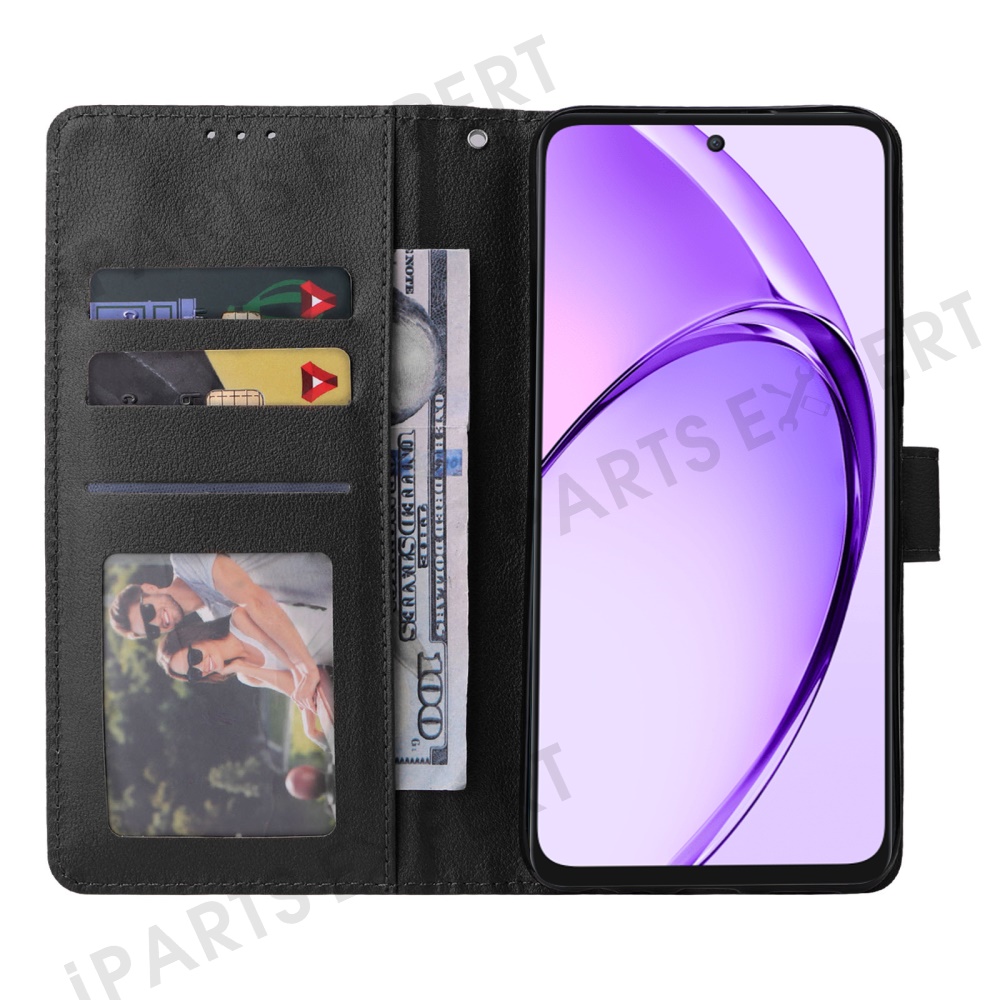 Wallet Phone Case for Oppo A80 5G / A3 Pro (India) 5G / A3 Pro (Global) 5G / K12x 5G (India) / A3x 5G (China) PU Leather Phone Cover - Black