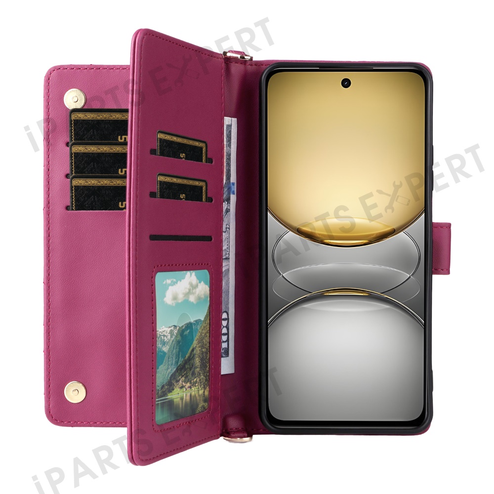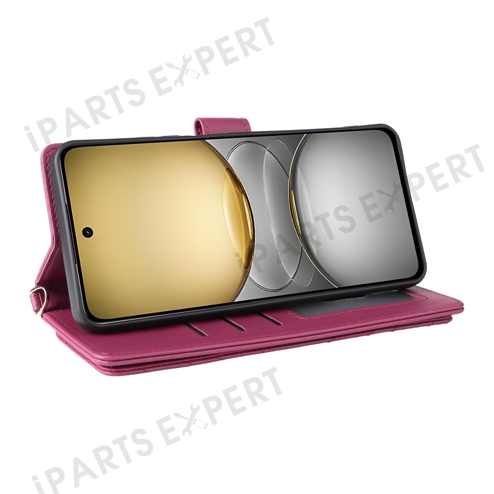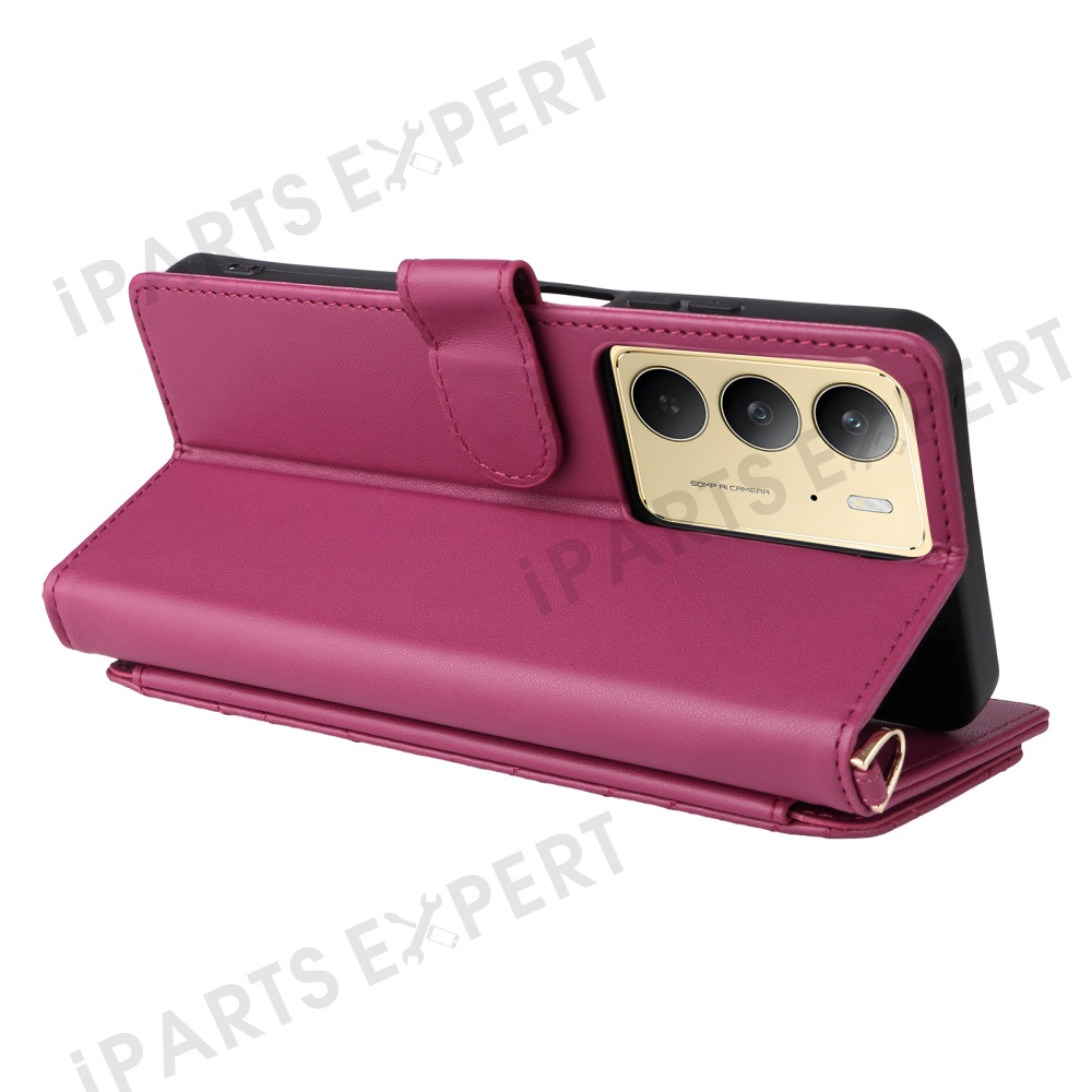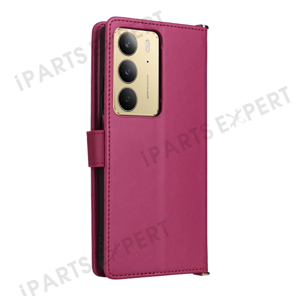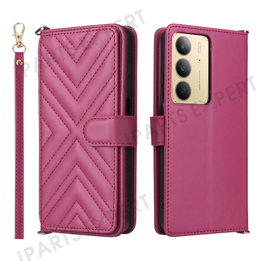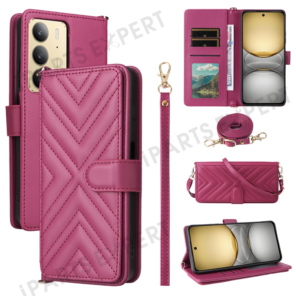 Wallet Phone Case for Realme 14x 5G / V60 Pro 5G / C75 4G Leather Phone Cover with Shoulder / Wrist Strap - Rose