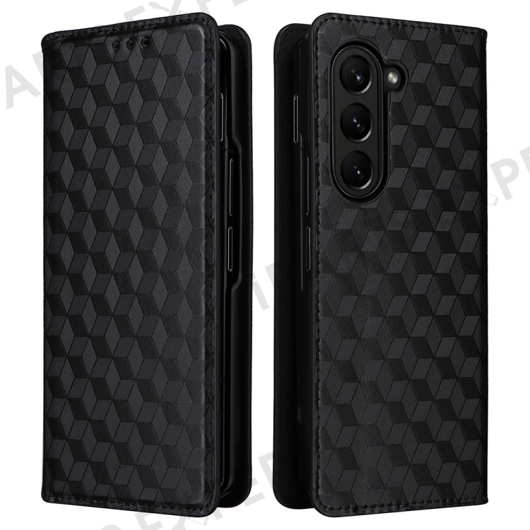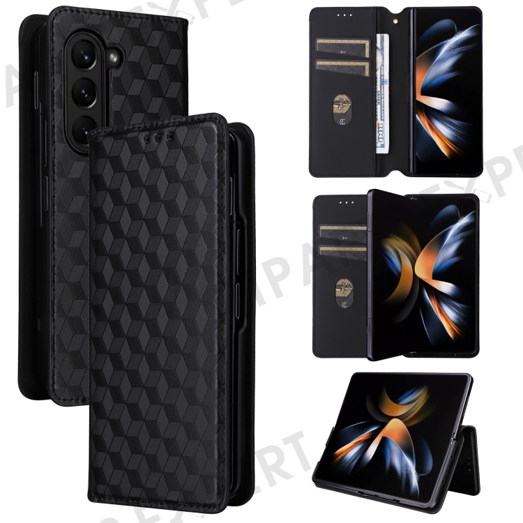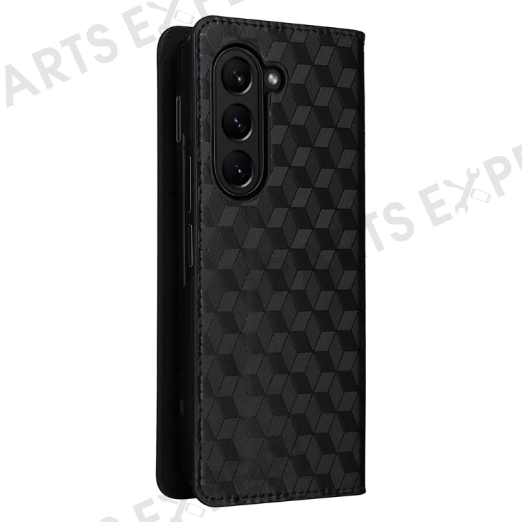 Wallet Phone Case for Samsung Galaxy Z Fold5 5G Rhombus Imprinted PU Leather Phone Cover - Black