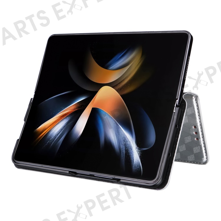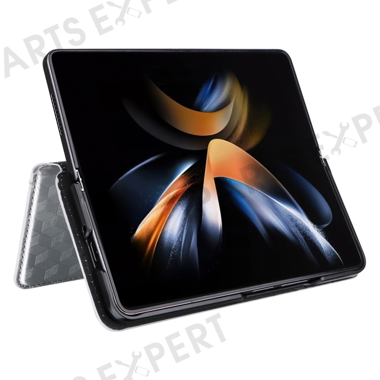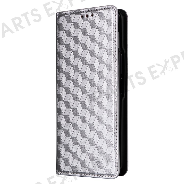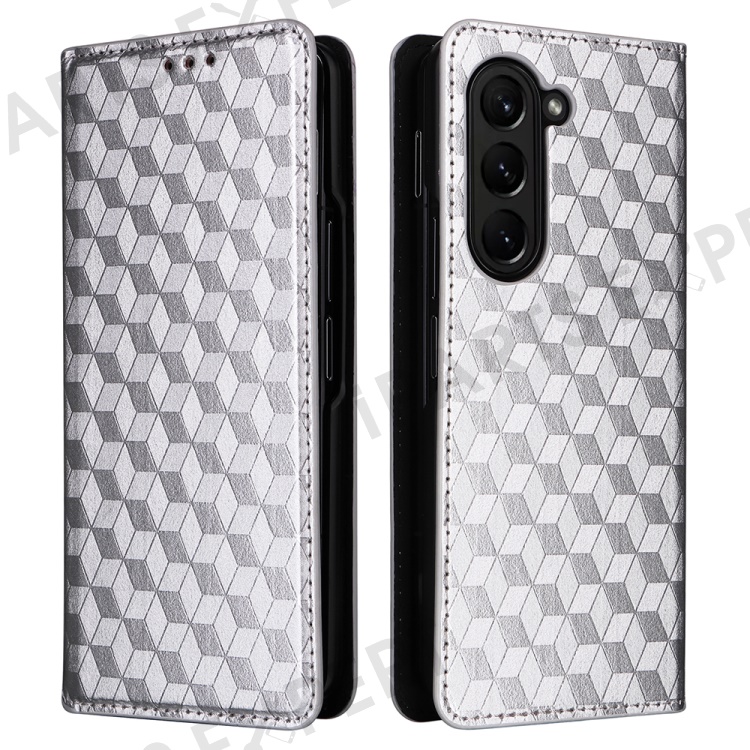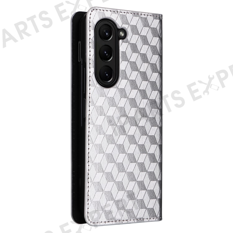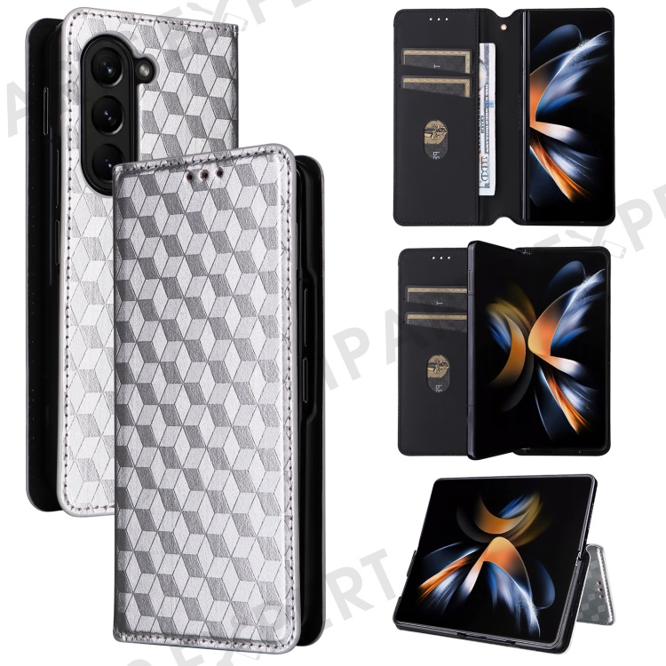 Wallet Phone Case for Samsung Galaxy Z Fold5 5G Rhombus Imprinted PU Leather Phone Cover - Silver