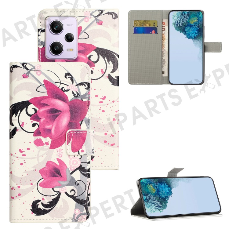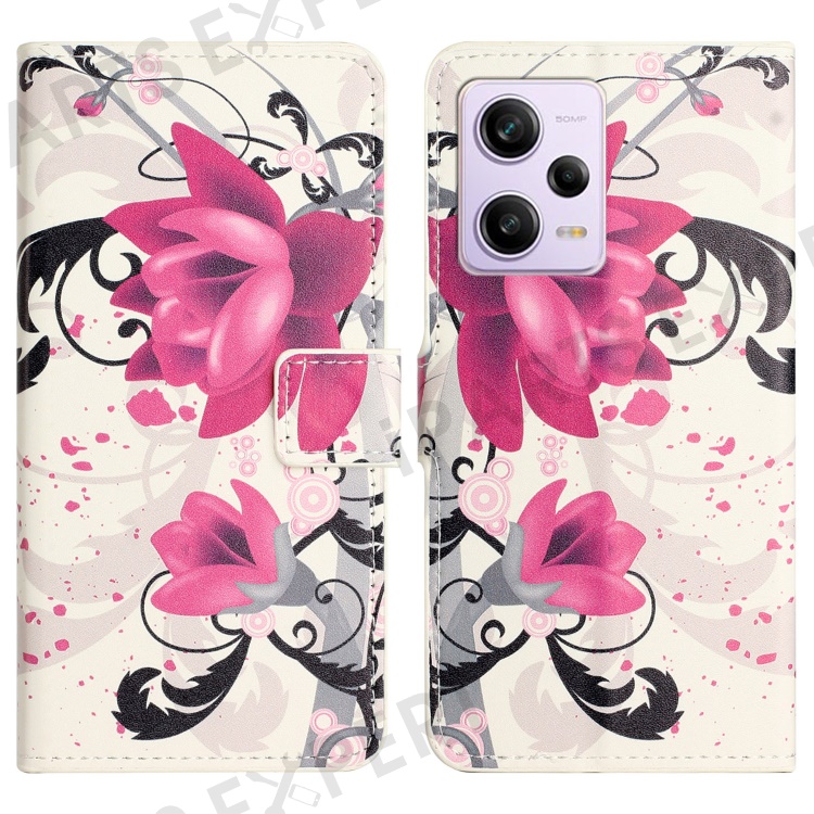 Wallet Phone Case for Xiaomi Redmi Note 12 Pro 5G / Note 12 Pro Speed 5G / Poco X5 Pro 5G , Pattern Printing PU Leather Stand Cover - Lotus