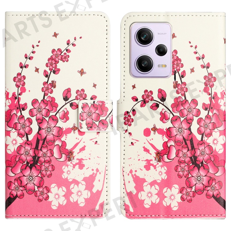 Wallet Phone Case for Xiaomi Redmi Note 12 Pro 5G / Note 12 Pro Speed 5G / Poco X5 Pro 5G , Pattern Printing PU Leather Stand Cover - Plum Blossom