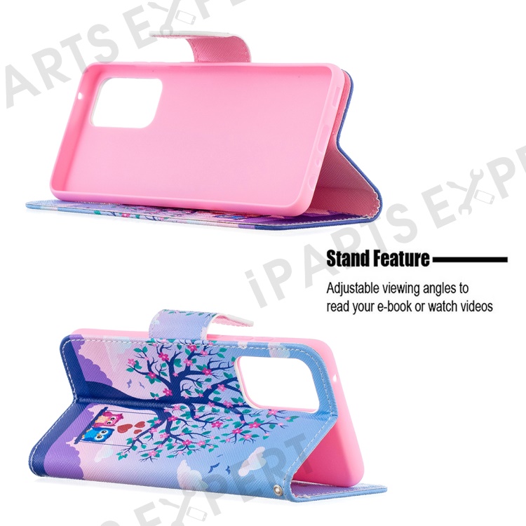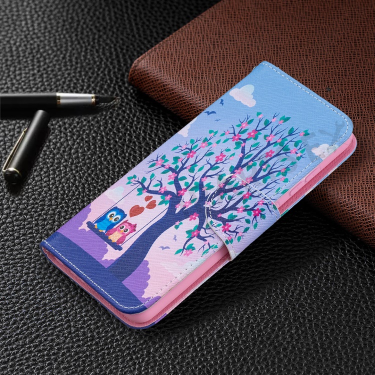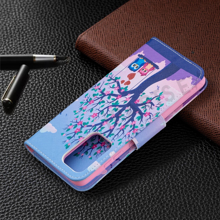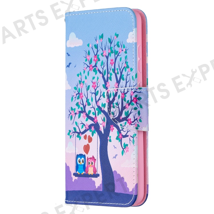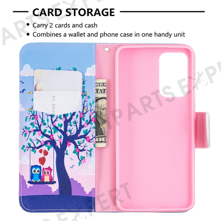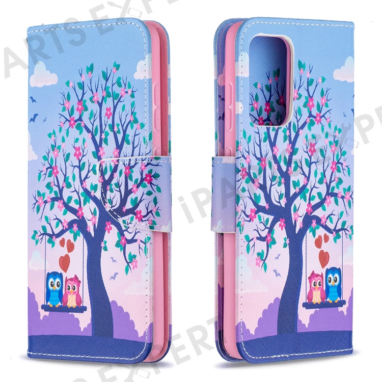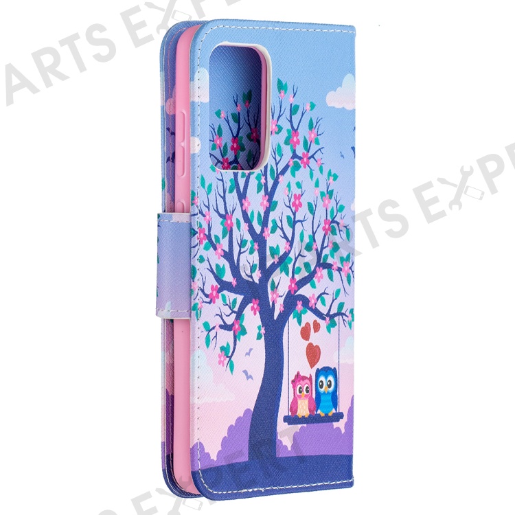 Wallet Stand Design Pattern Printing Folio Flip Leather Phone Shell for Samsung Galaxy A52 4G/5G / A52s 5G - Couple Owls and Tree