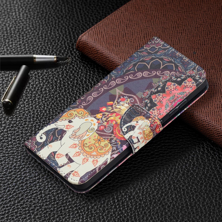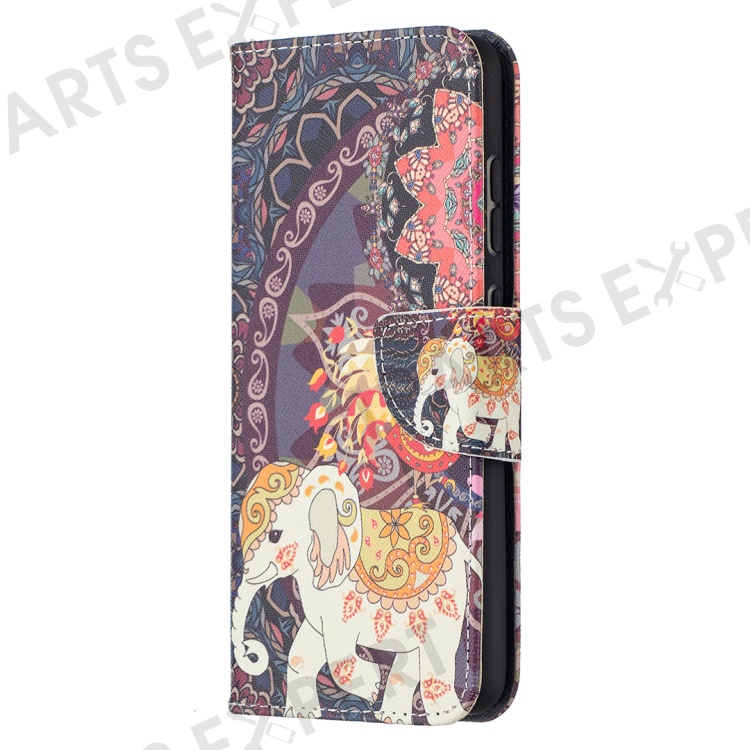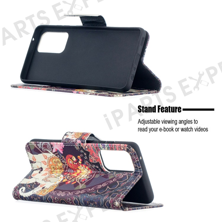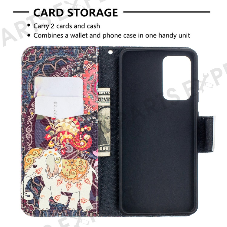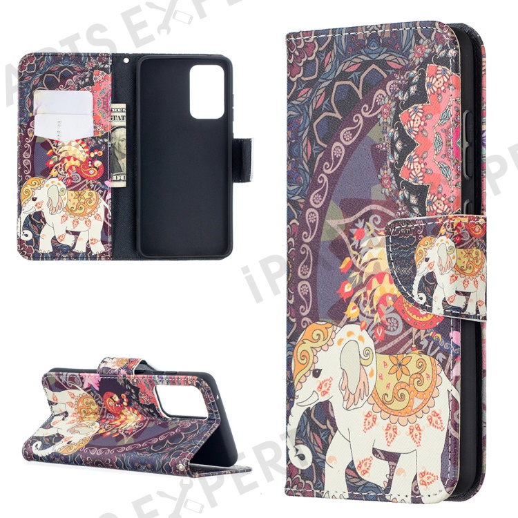 Wallet Stand Design Pattern Printing Folio Flip Leather Phone Shell for Samsung Galaxy A52 4G/5G / A52s 5G - Malanda and Elephant
