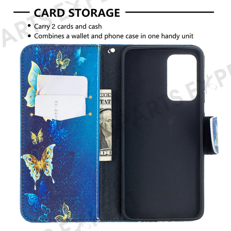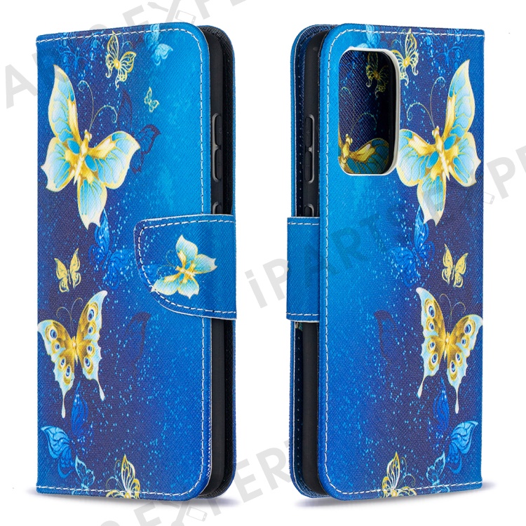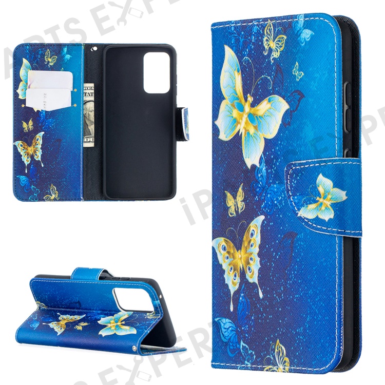 Wallet Stand Design Pattern Printing Folio Flip Leather Phone Shell for Samsung Galaxy A52 4G/5G / A52s 5G - Metal Butterflies