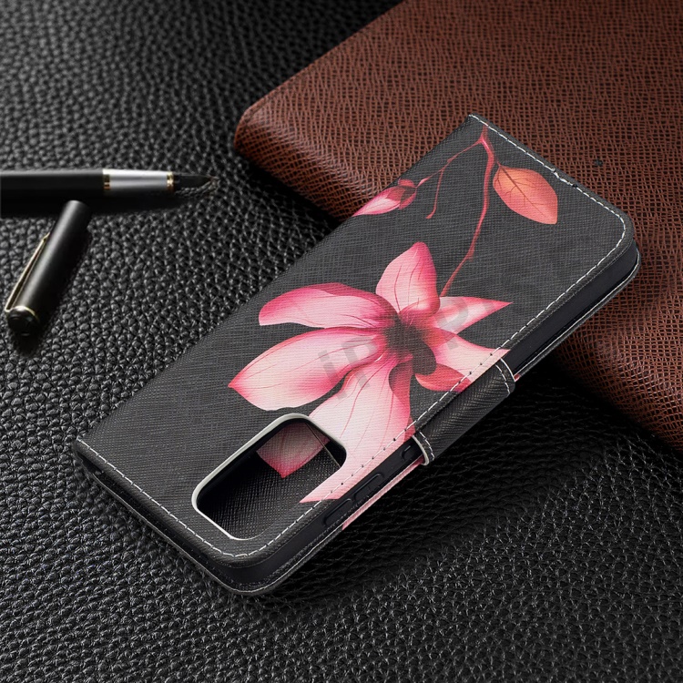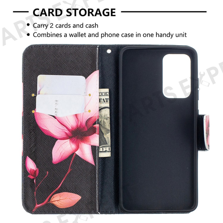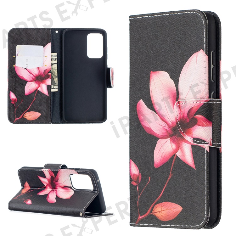Wallet Stand Design Pattern Printing Folio Flip Leather Phone Shell for Samsung Galaxy A52 4G/5G / A52s 5G - Red Flowers