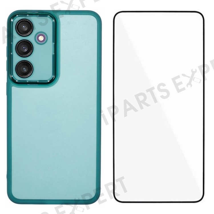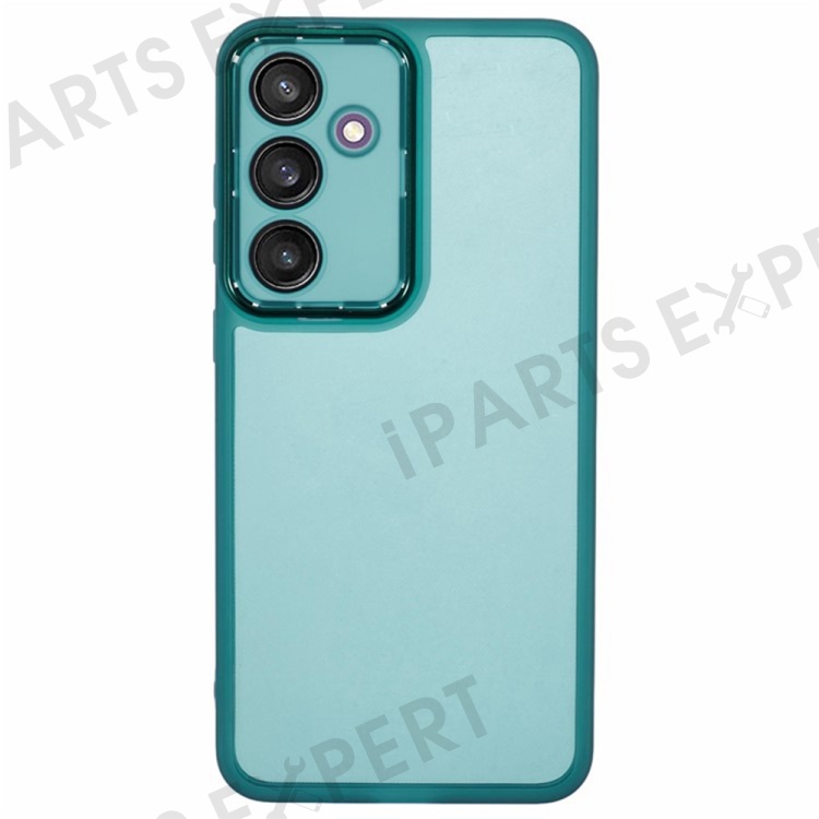 WANLONFENG DKSM Series for Samsung Galaxy S24 FE TPU Case Electroplated Frame with Tempered Glass - Transparent Army Green