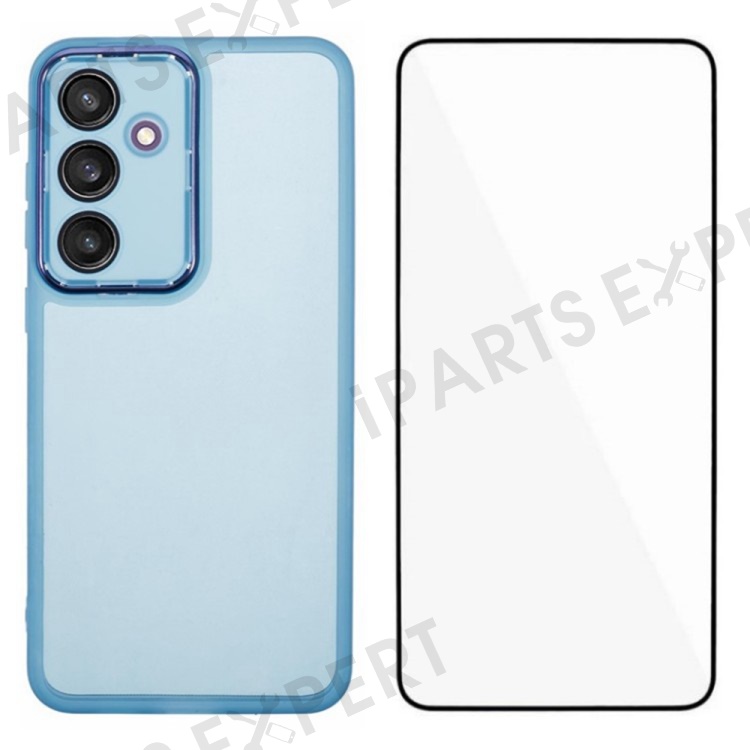 WANLONFENG DKSM Series for Samsung Galaxy S24 FE TPU Case Electroplated Frame with Tempered Glass - Transparent Blue
