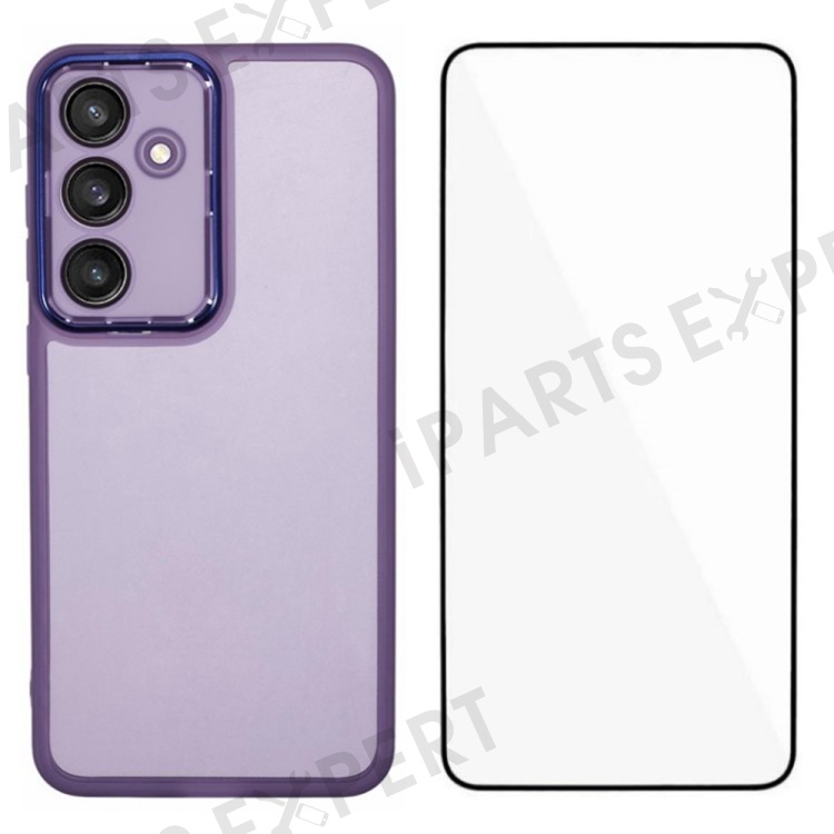 WANLONFENG DKSM Series for Samsung Galaxy S24 FE TPU Case Electroplated Frame with Tempered Glass - Transparent Purple