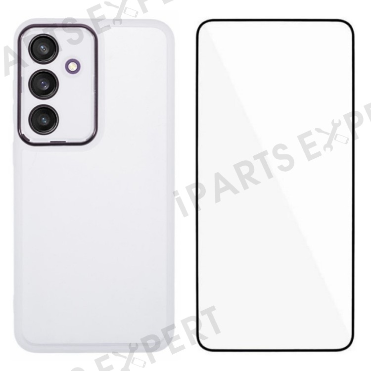WANLONFENG DKSM Series for Samsung Galaxy S24 FE TPU Case Electroplated Frame with Tempered Glass - Transparent White