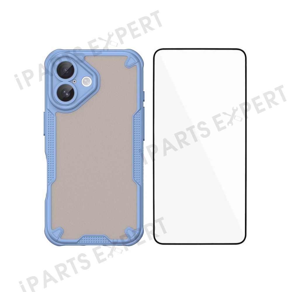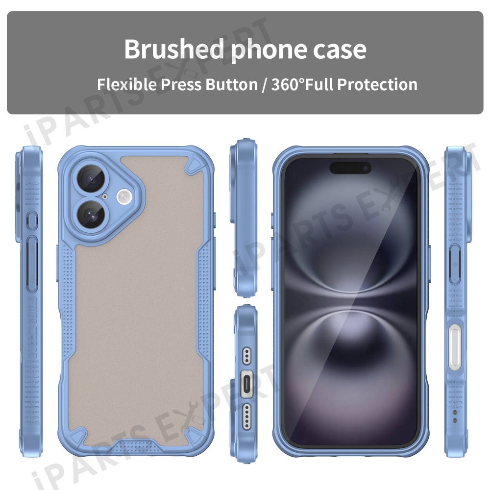 WANLONFENG MFFJ Series For iPhone 16 Case Anti Drop TPU Phone Back Cover with Screen Film - Blue