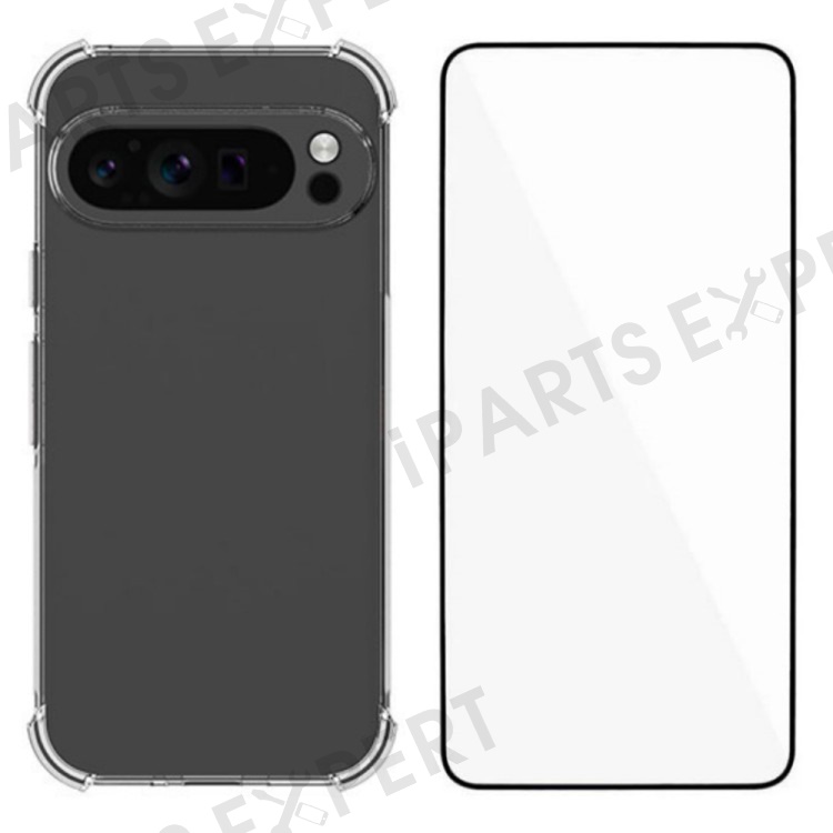 WANLONFENG WL Series for Google Pixel 9 Pro XL Case 2.0mm Clear TPU Cover with Tempered Glass Film (Big Lens Hole)