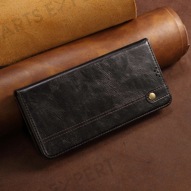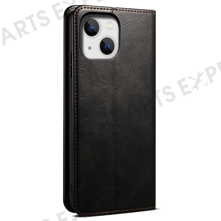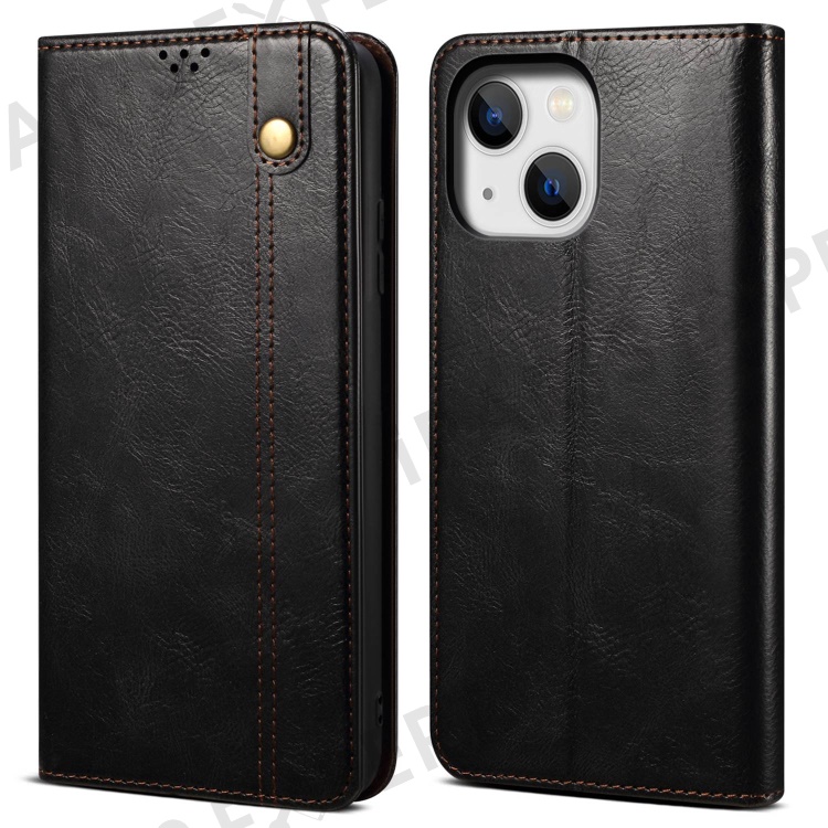 Waxy Crazy Horse Texture Phone Case for iPhone 14 6.1 inch, Anti-scratch PU Leather Stand Wallet Cover - Black