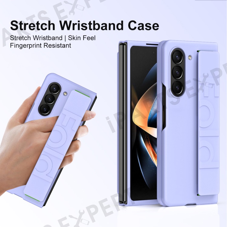 Wrist Strap Phone Case for Samsung Galaxy Z Fold5 5G , Anti-Scratch Rubberized PC Phone Cover - Purple