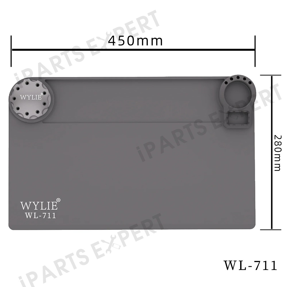 WYLIE WL-711 Heat Insulation Silicone Work Mat 450 x 280mm for Phone Screen Motherboard Repair Tools - Grey