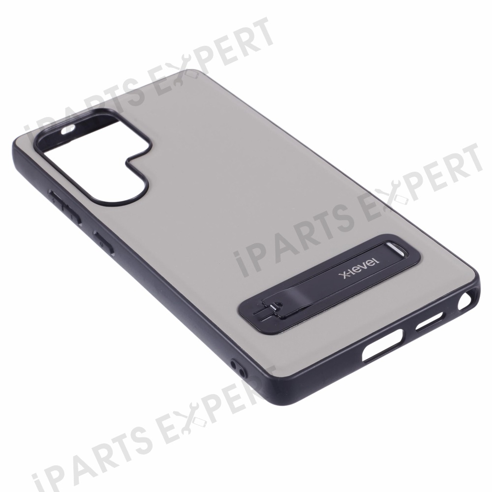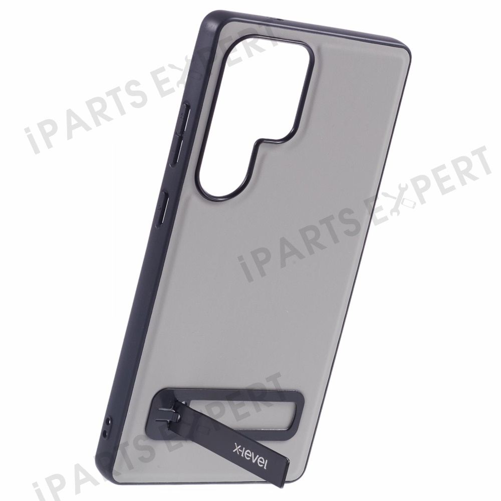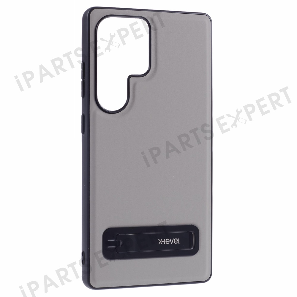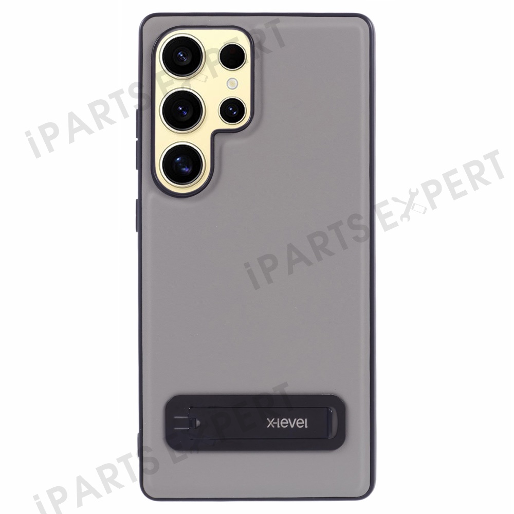 X-LEVEL For Samsung Galaxy S25 Ultra Phone Case Leather Coated PC TPU Back Cover with Metal Kickstand - Grey