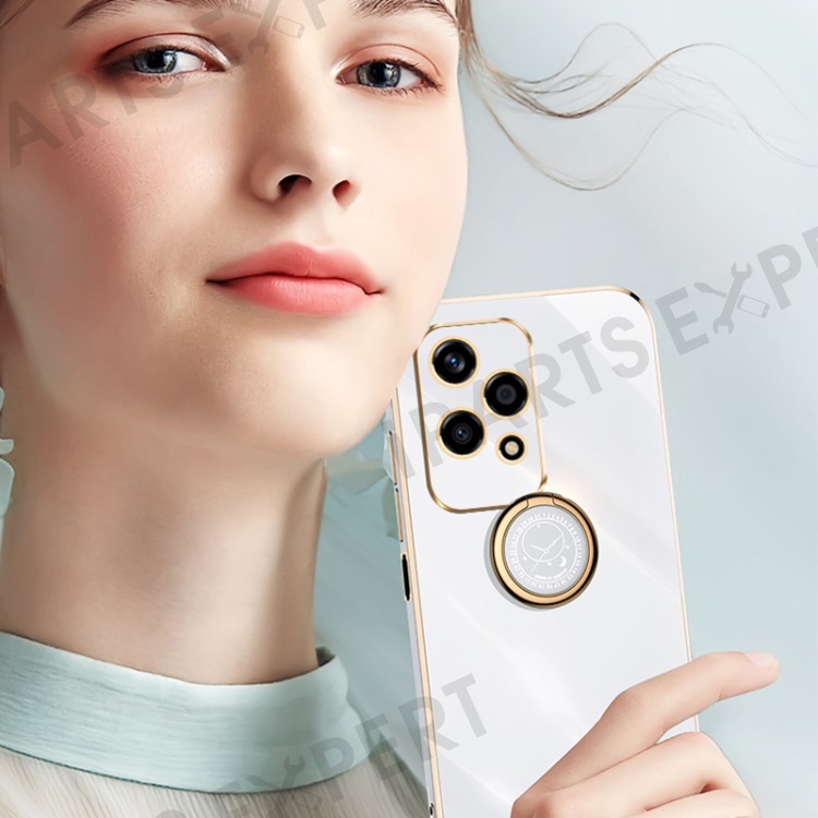 XINLI For Honor 200 Lite TPU Case Electroplating Phone Cover with Ring Kickstand - Red