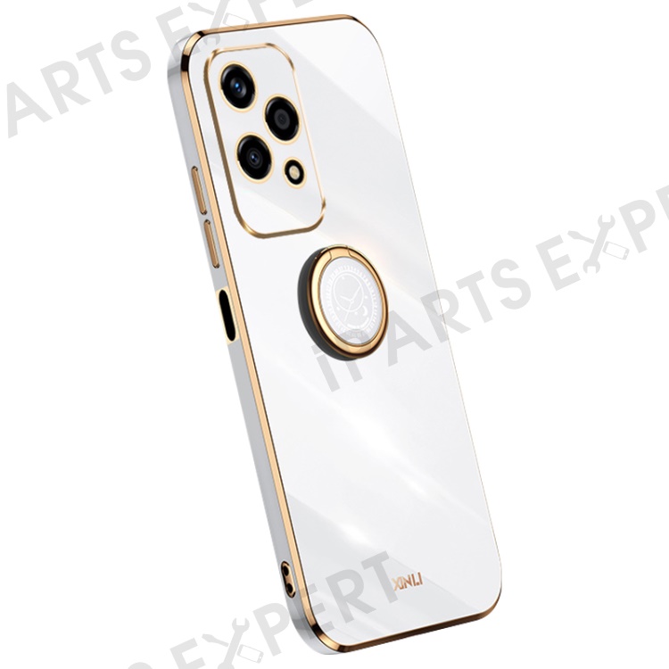 XINLI For Honor 200 Lite TPU Case Electroplating Phone Cover with Ring Kickstand - White