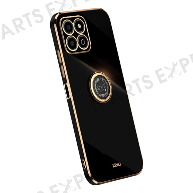 XINLI For Honor X8a 4G Electroplating Frame Phone Case Ring Kickstand TPU Back Cover - Black