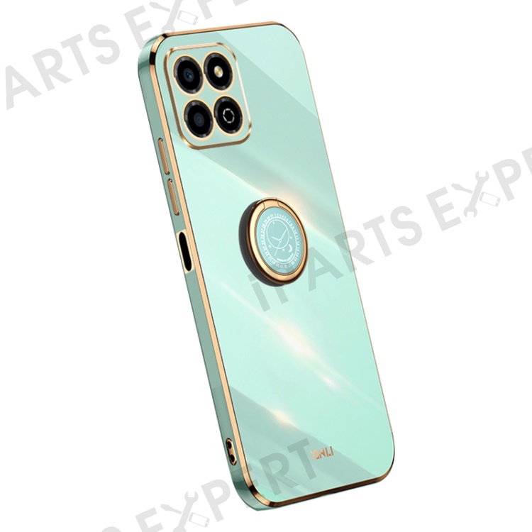 XINLI For Honor X8a 4G Electroplating Frame Phone Case Ring Kickstand TPU Back Cover - Cyan