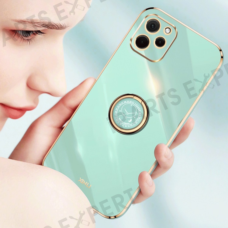 XINLI For Huawei nova Y61 4G Ring Holder Kickstand Phone TPU Case Electroplating Phone Cover - Blue