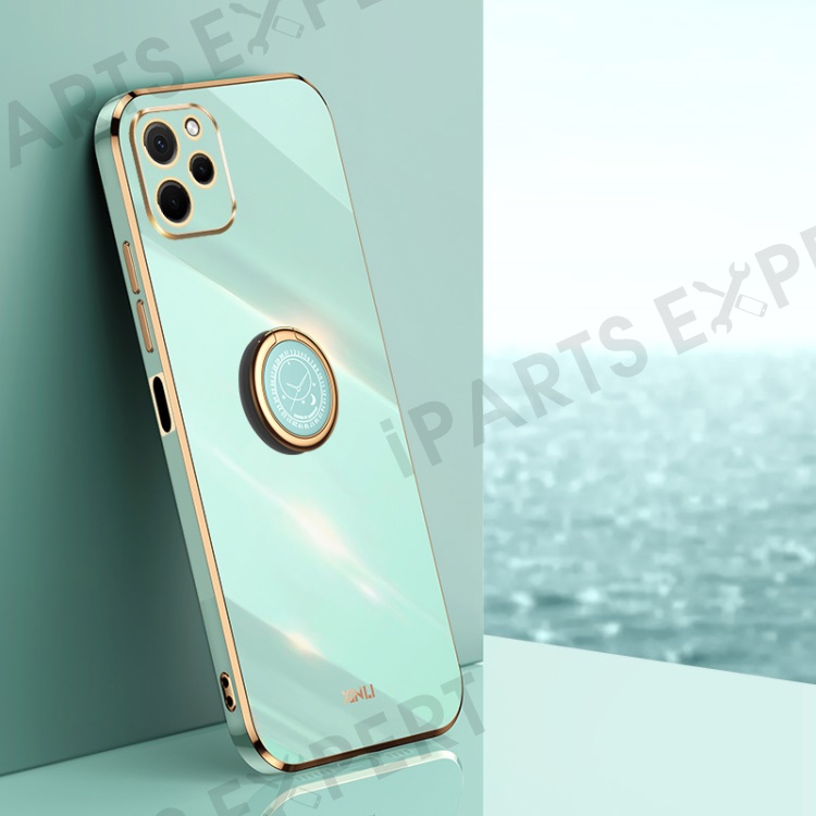 XINLI For Huawei nova Y61 4G Ring Holder Kickstand Phone TPU Case Electroplating Phone Cover - Cyan