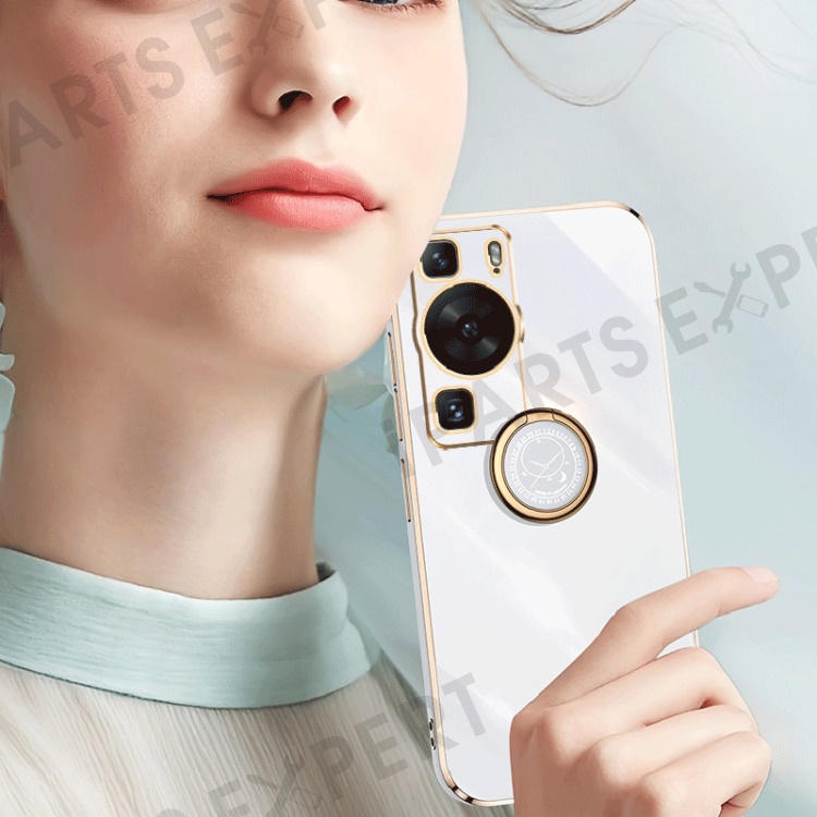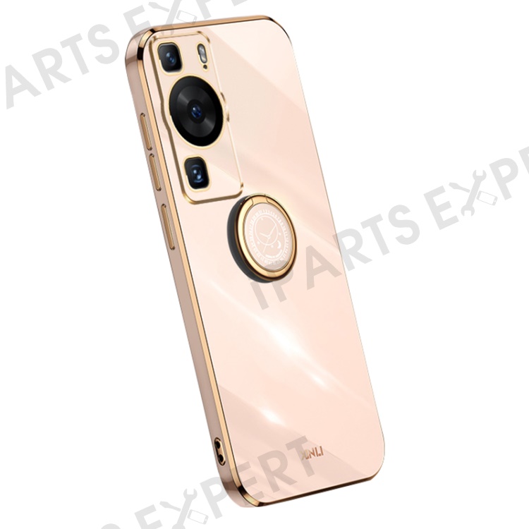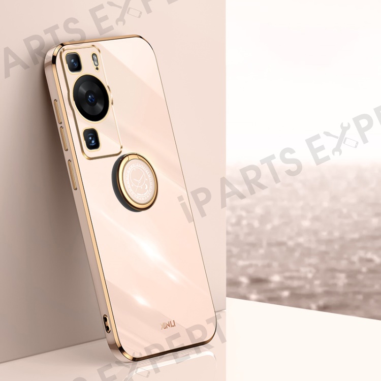 XINLI For Huawei P60 Electroplating Phone Case Ring Kickstand Soft TPU Phone Cover - Pink