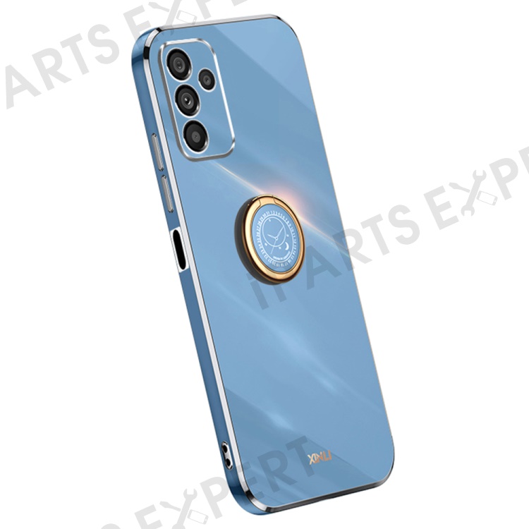 XINLI For Samsung Galaxy A14 5G / A14 4G Precise Lens Cutout Ring Kickstand Phone Case Electroplating Golden Edge Soft TPU Cover - Blue