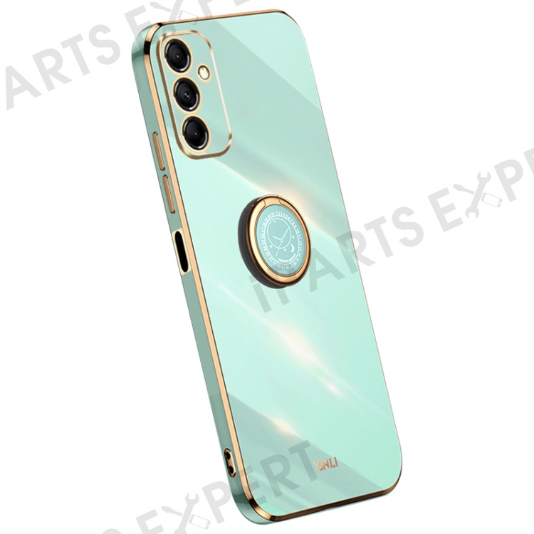 XINLI For Samsung Galaxy M14 5G Ring Kickstand Soft TPU Back Cover Electroplated Phone Case - Cyan