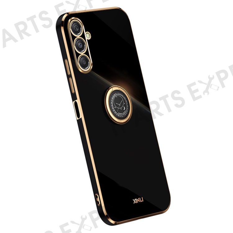 XINLI For Samsung Galaxy F34 5G / M34 5G Ring Kickstand TPU Back Cover Electroplated Anti-scratch Phone Case - Black