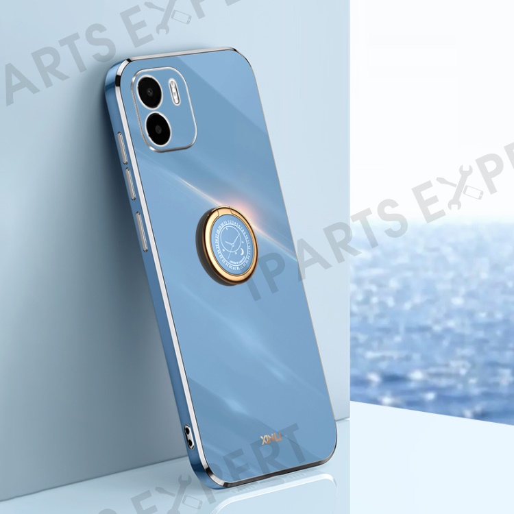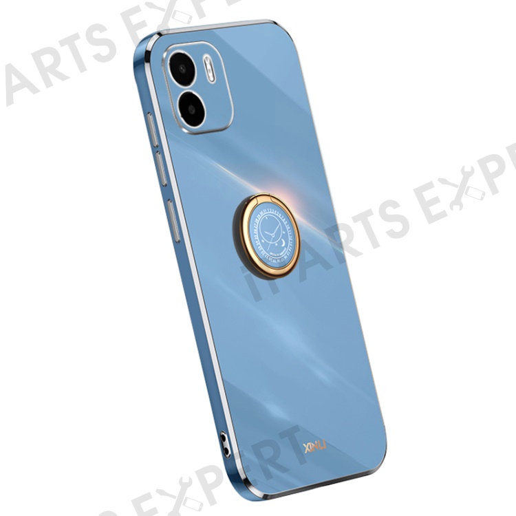 XINLI Kickstand Phone Case for Xiaomi Redmi A1 4G / A2 4G, Electroplating Golden Edge TPU Phone Cover with Ring Holder - Blue