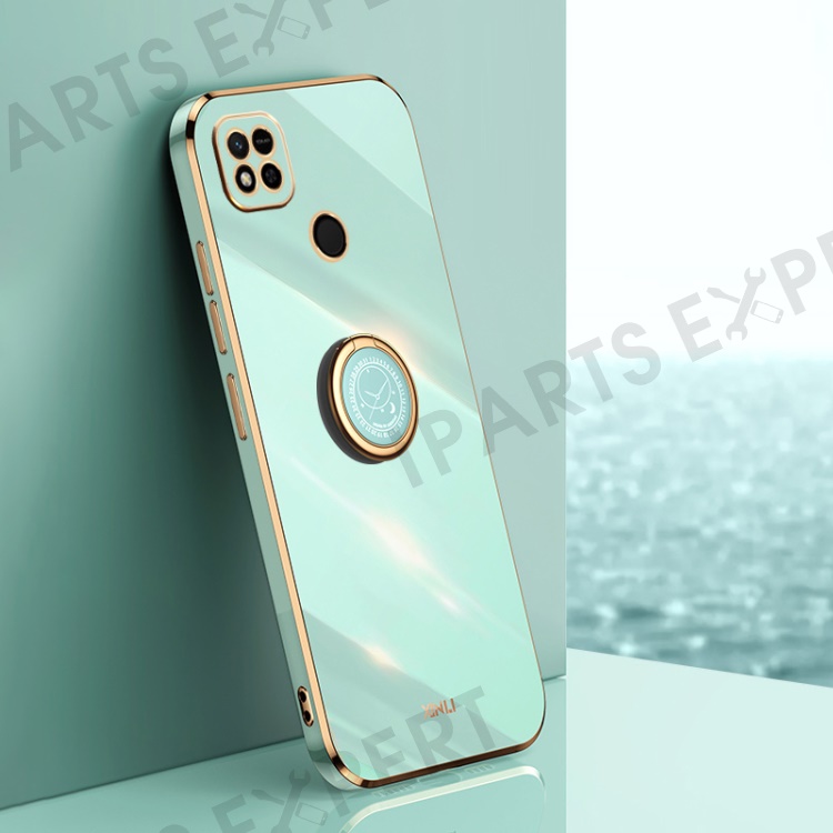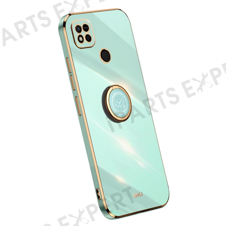 XINLI Ring Holder Kickstand Phone Case for Xiaomi Redmi 10A, Electroplating Golden Edge TPU Phone Cover - Cyan