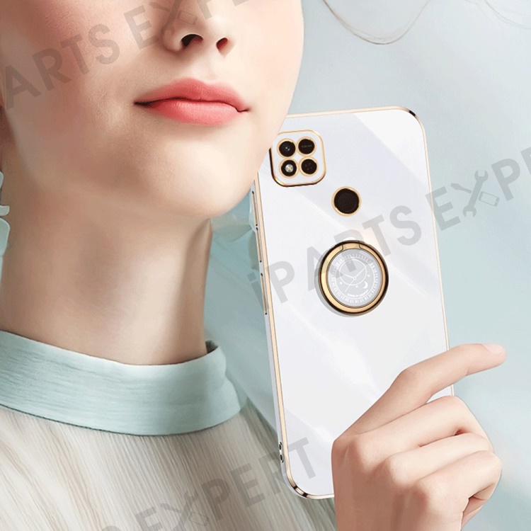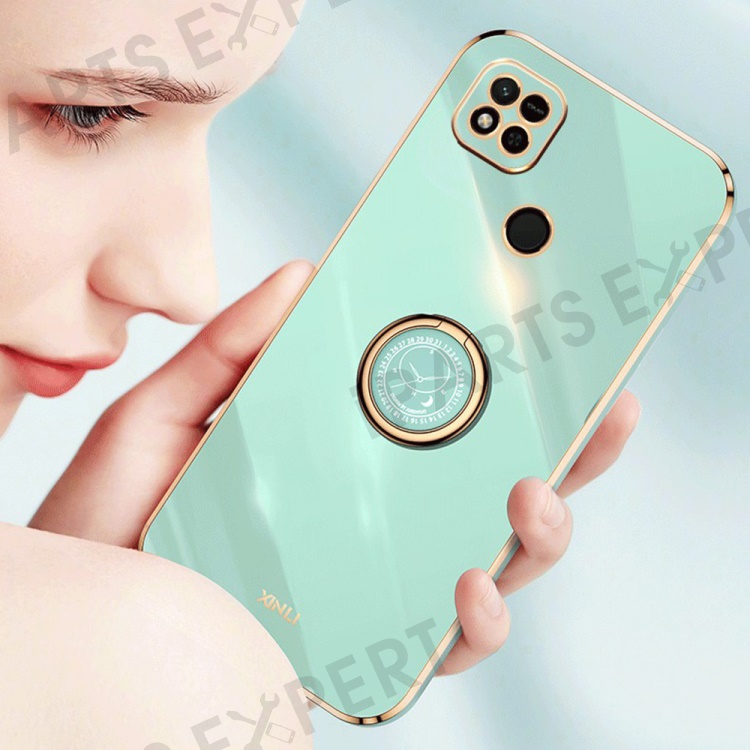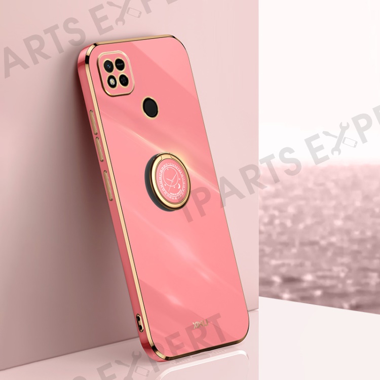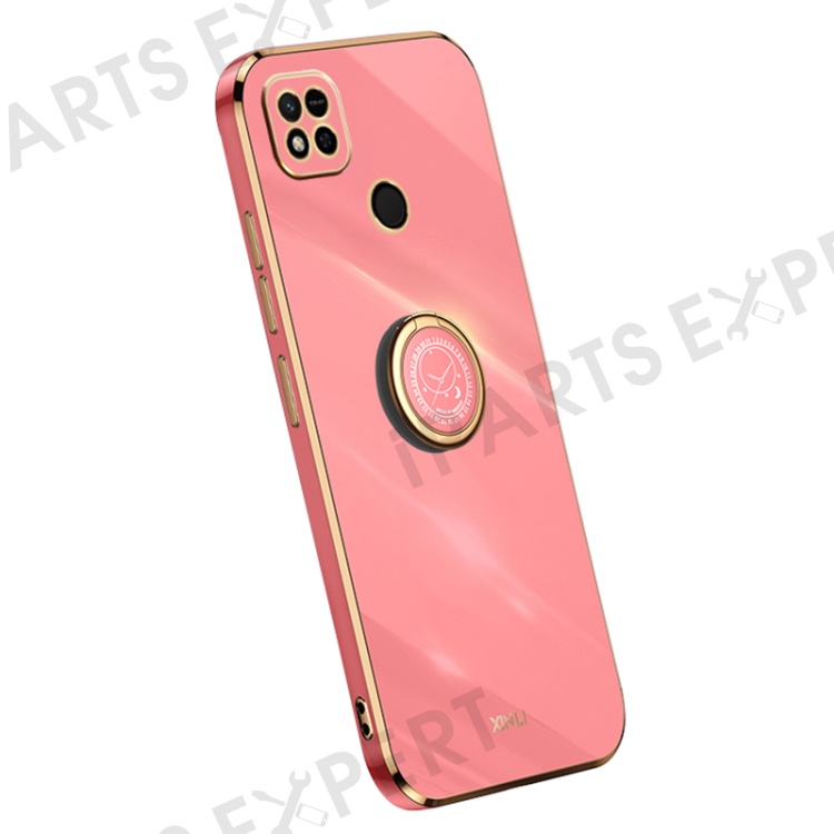 XINLI Ring Holder Kickstand Phone Case for Xiaomi Redmi 10A, Electroplating Golden Edge TPU Phone Cover - Red