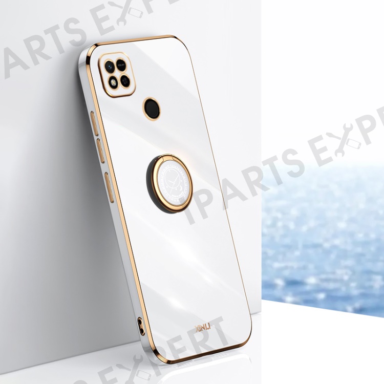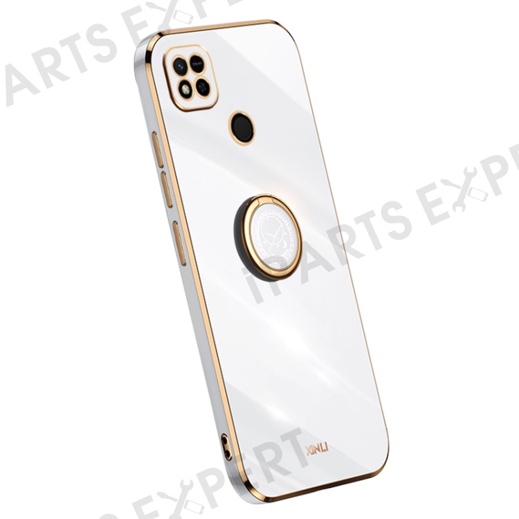 XINLI Ring Holder Kickstand Phone Case for Xiaomi Redmi 10A, Electroplating Golden Edge TPU Phone Cover - White