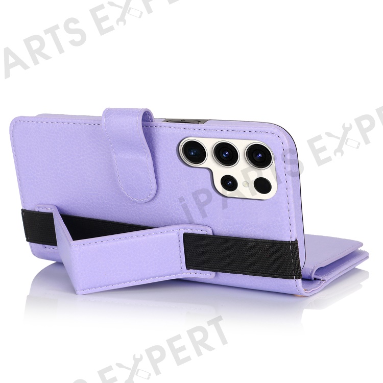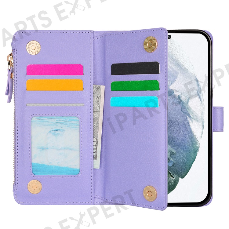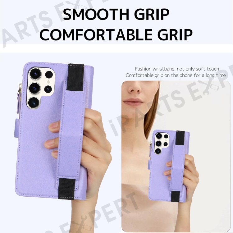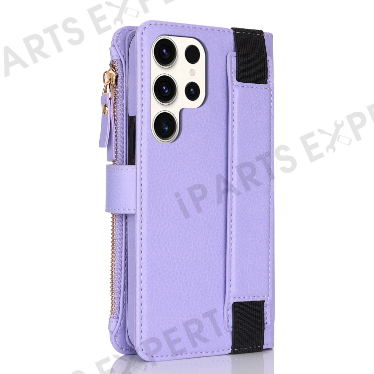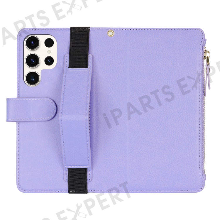 XL-001 For Samsung Galaxy S23 Ultra Case Zipper Pocket Wristband Stand Leather Phone Cover - Purple
