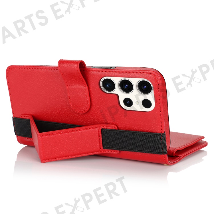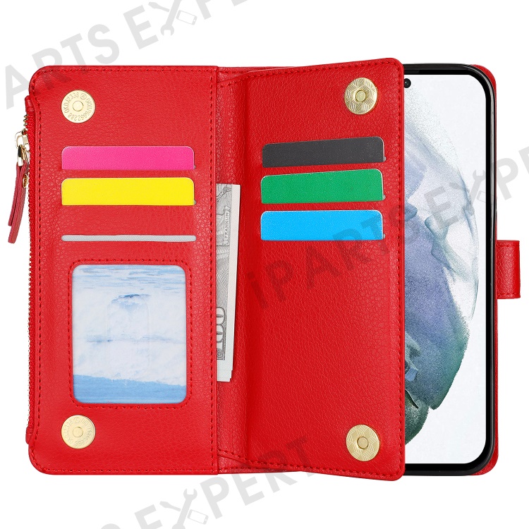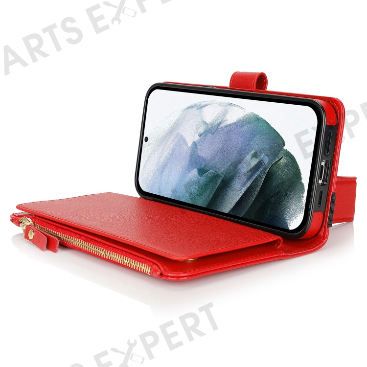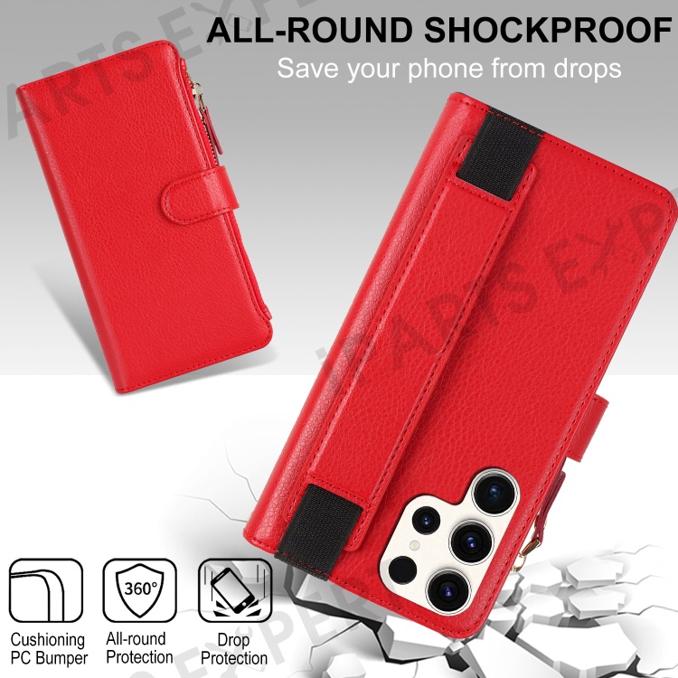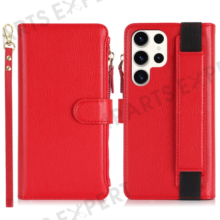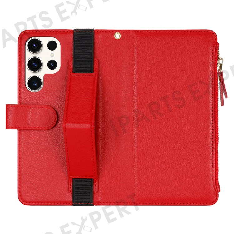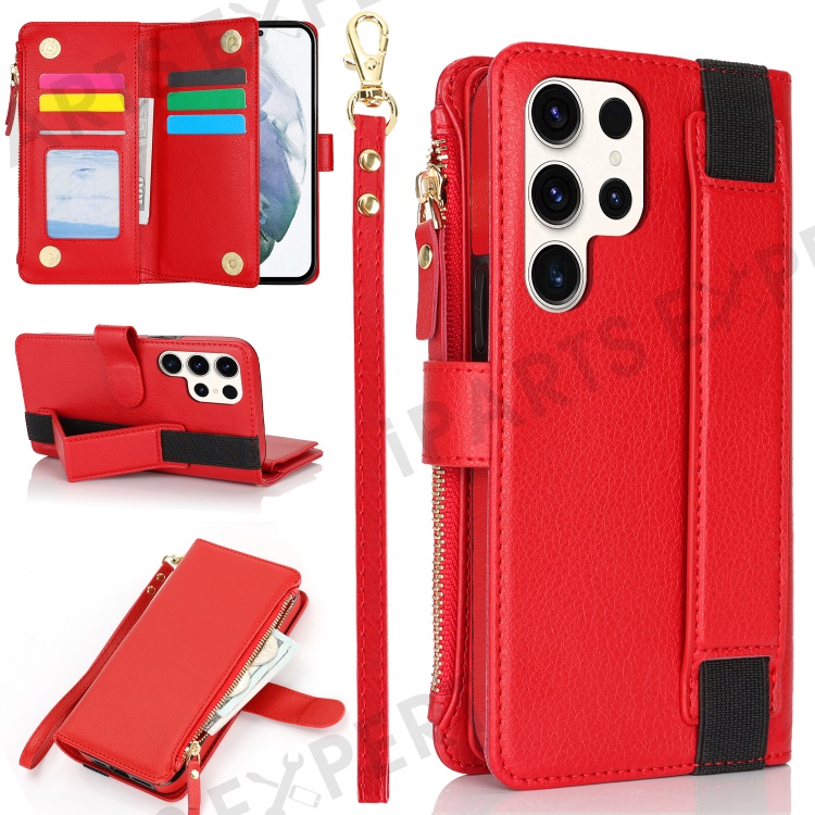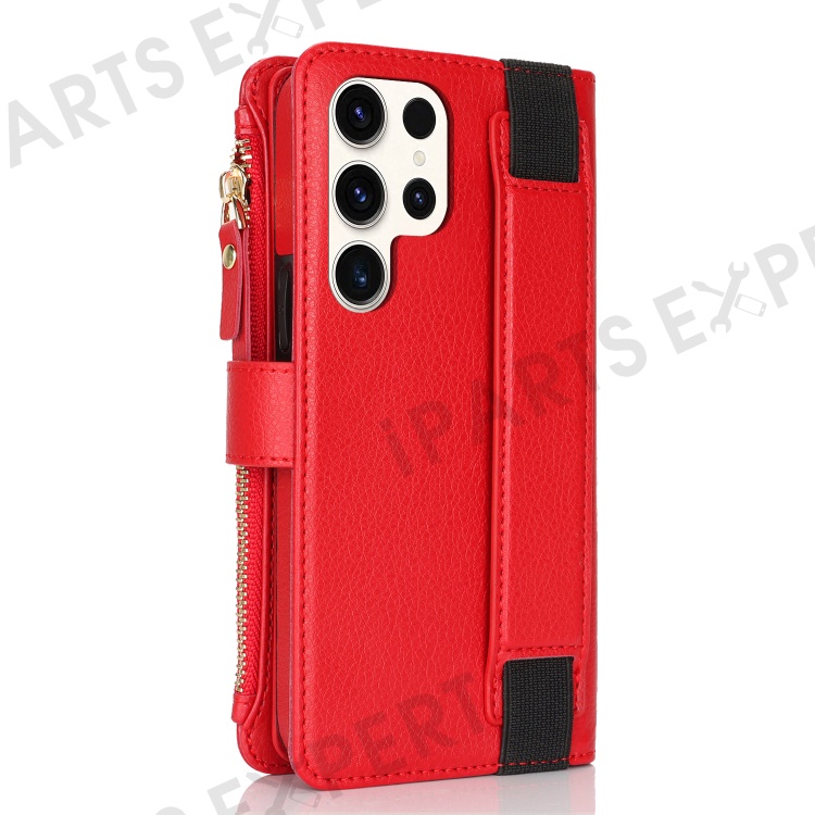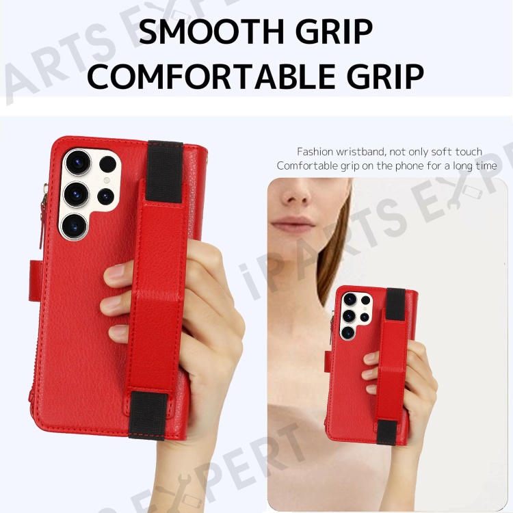 XL-001 For Samsung Galaxy S23 Ultra Case Zipper Pocket Wristband Stand Leather Phone Cover - Red