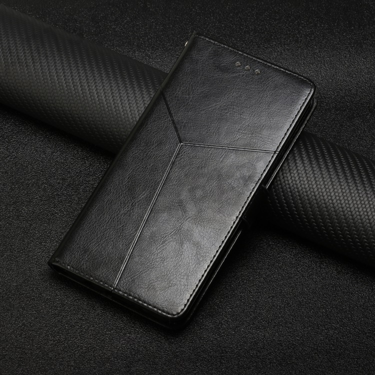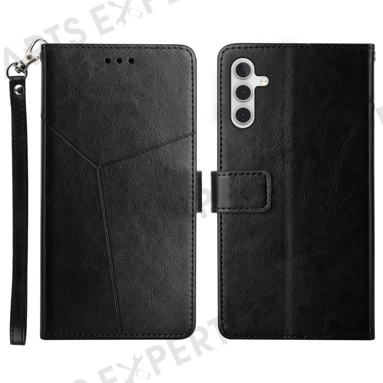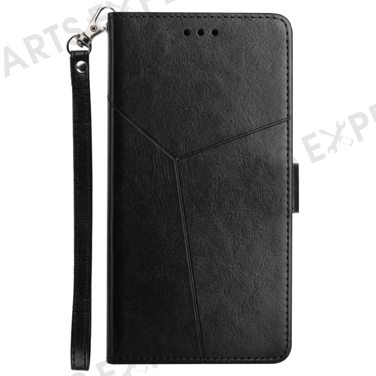 Y-Shaped Lines Imprinting PU Leather + Soft TPU Inner Shell Wallet Stand Phone Cover for Samsung Galaxy A13 5G / A04s 4G (164.7mm) - Black