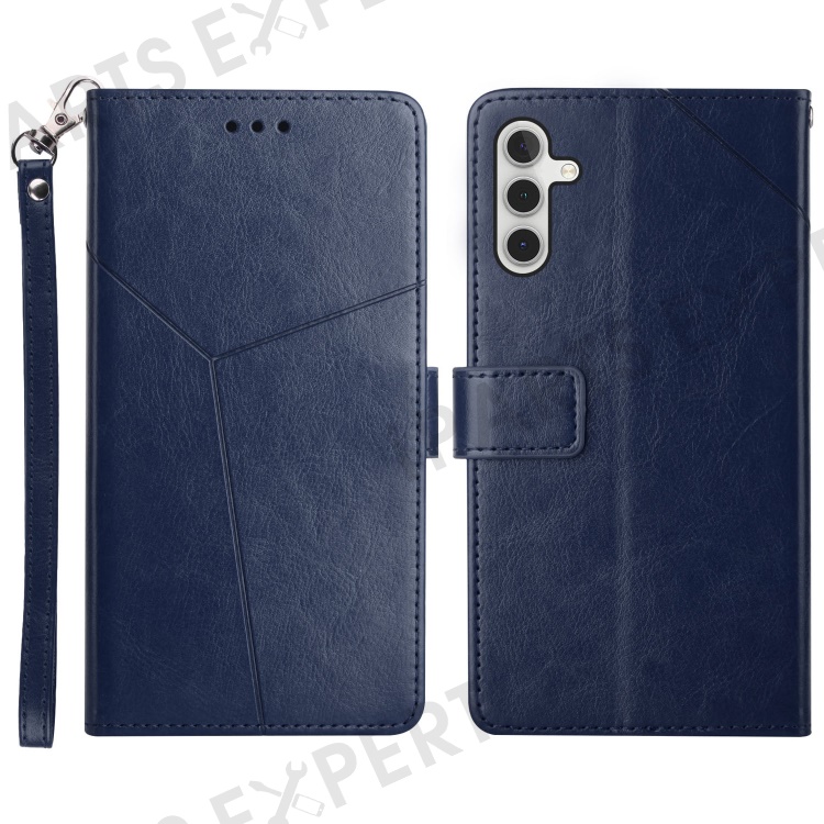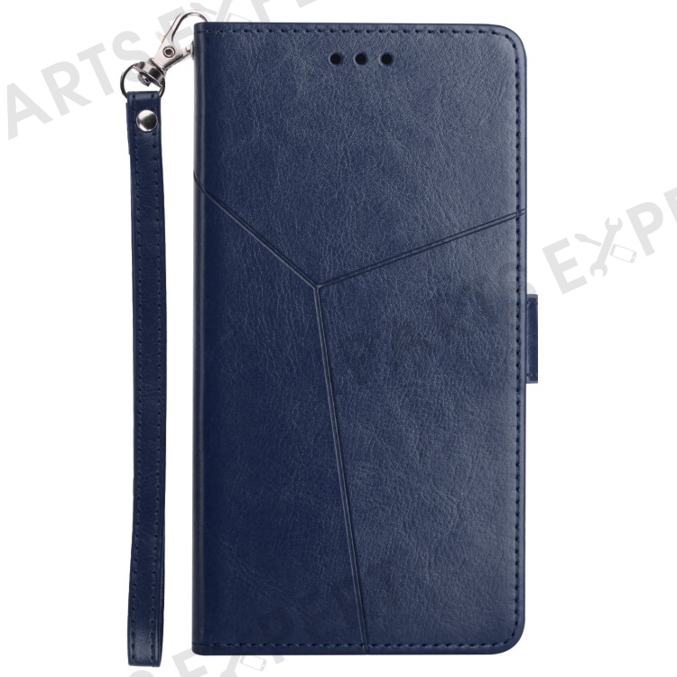 Y-Shaped Lines Imprinting PU Leather + Soft TPU Inner Shell Wallet Stand Phone Cover for Samsung Galaxy A13 5G / A04s 4G (164.7mm) - Blue