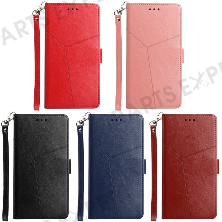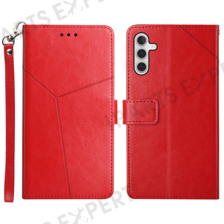 Y-Shaped Lines Imprinting PU Leather + Soft TPU Inner Shell Wallet Stand Phone Cover for Samsung Galaxy A13 5G / A04s 4G (164.7mm) - Red