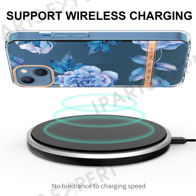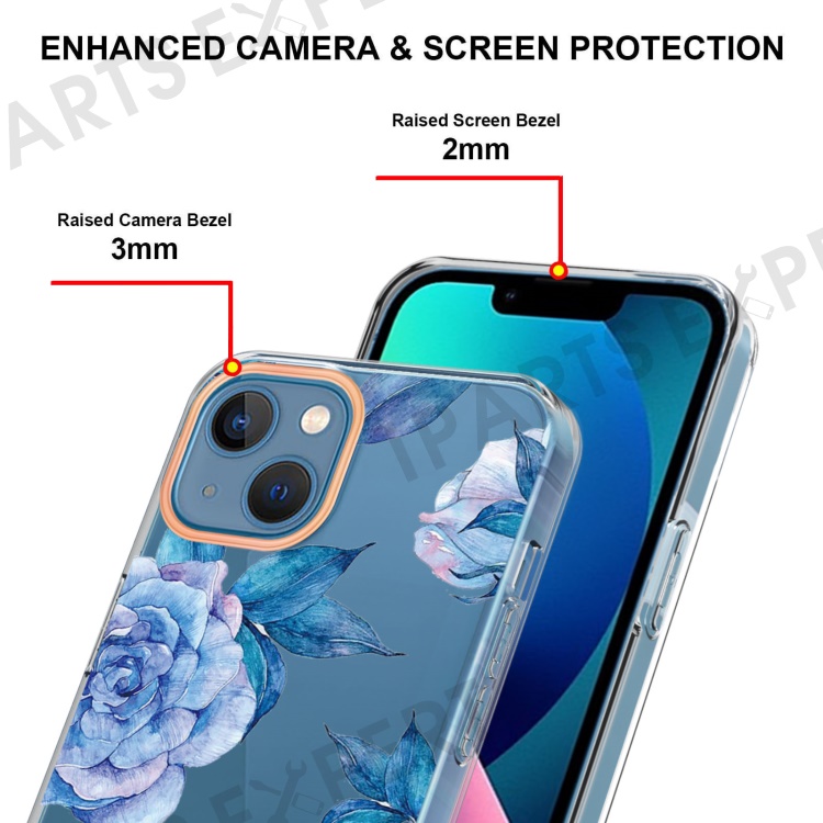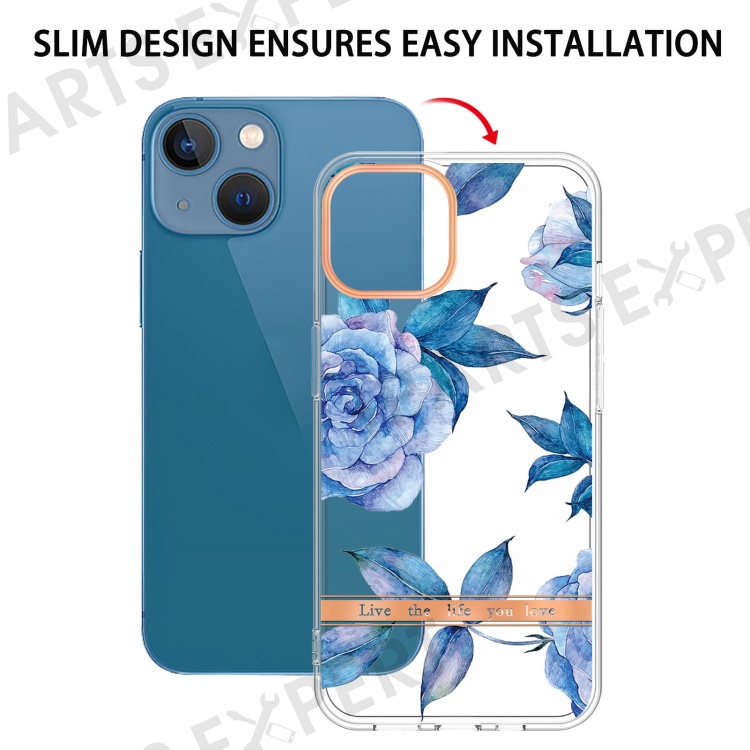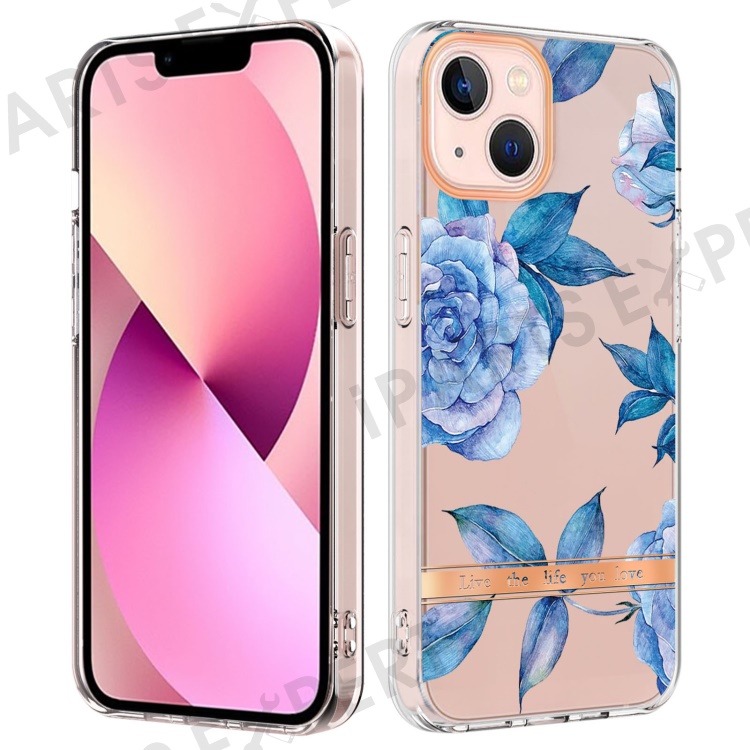 For iPhone 15 Case IMD IML Flower Pattern Electroplated TPU Back Cover - HC003 Blue Peony