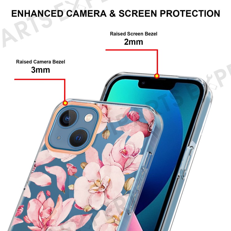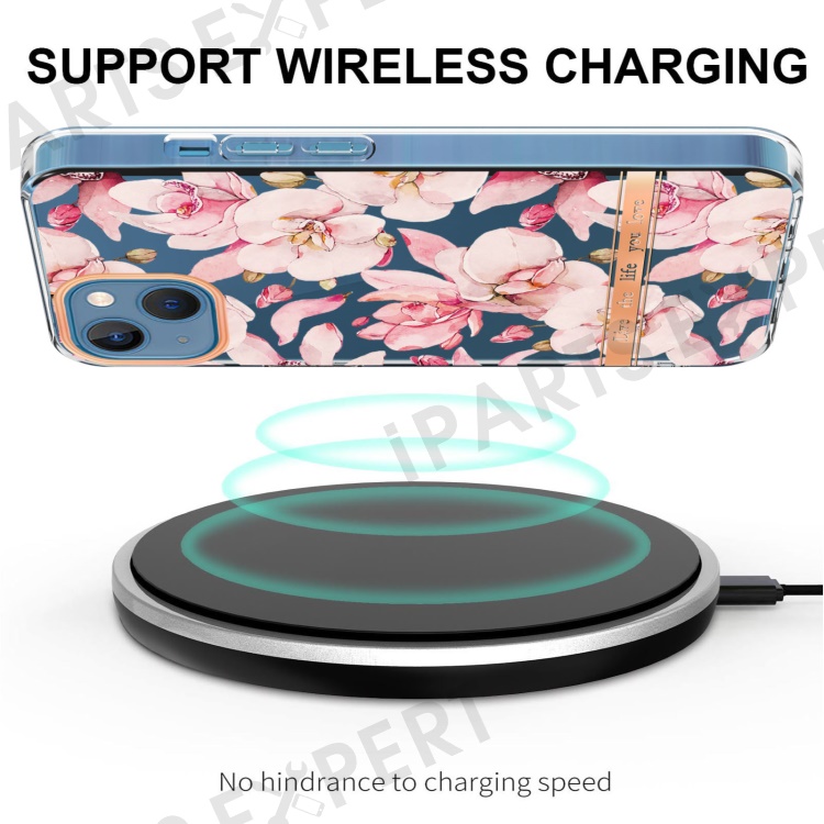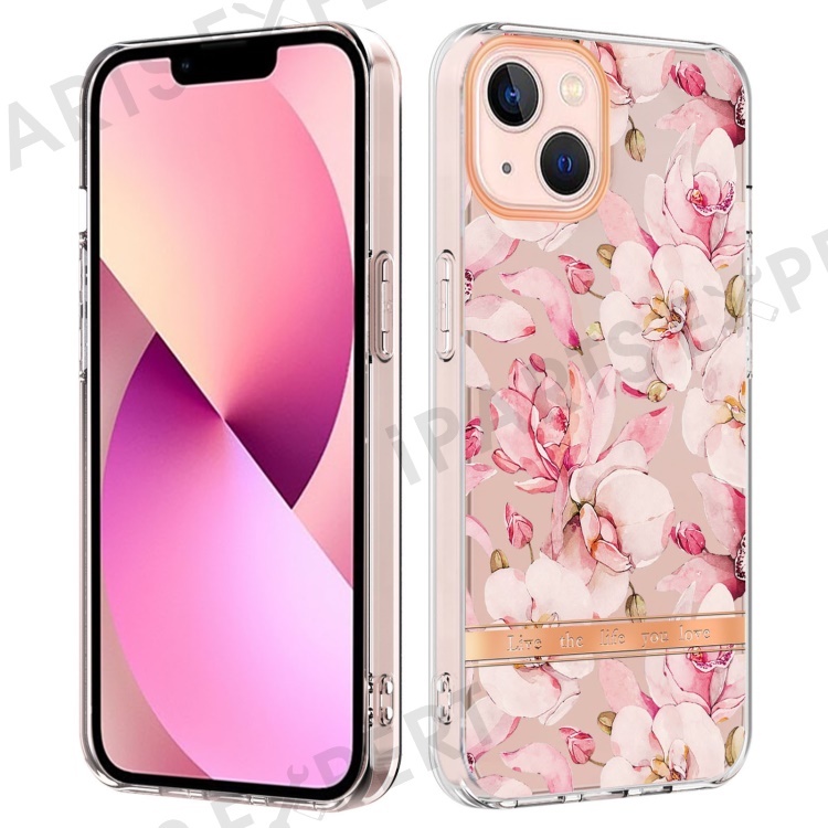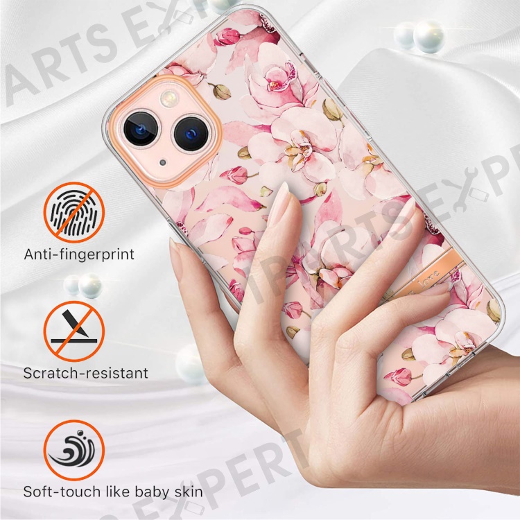 For iPhone 15 Case IMD IML Flower Pattern Electroplated TPU Back Cover - HC005 Pink Gardenia